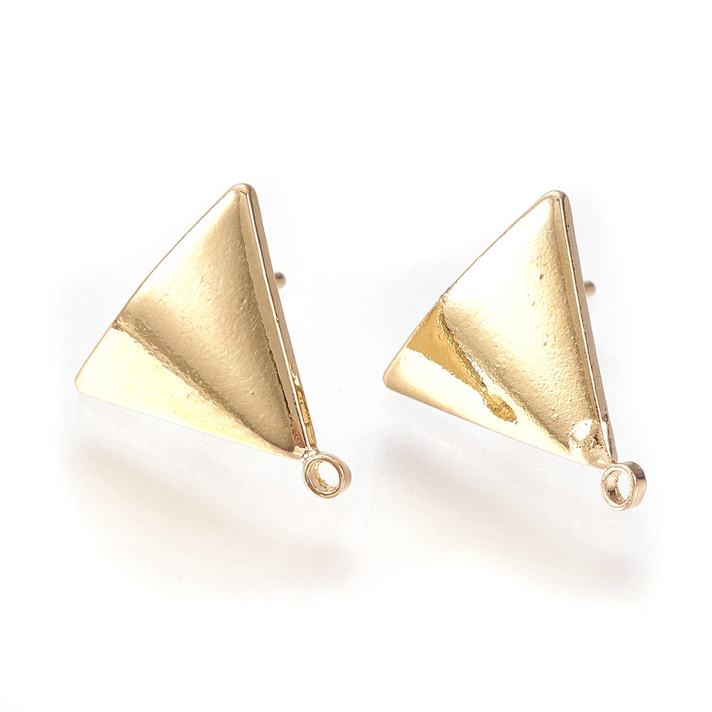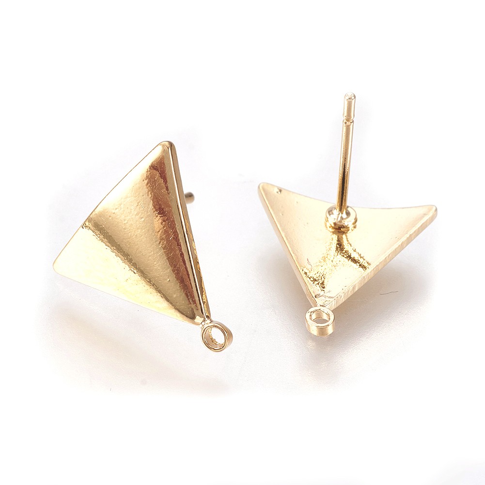 50pcs Gold Plated Brass Earring Posts Triangle Back Loop Smooth Nickel Free 13mm