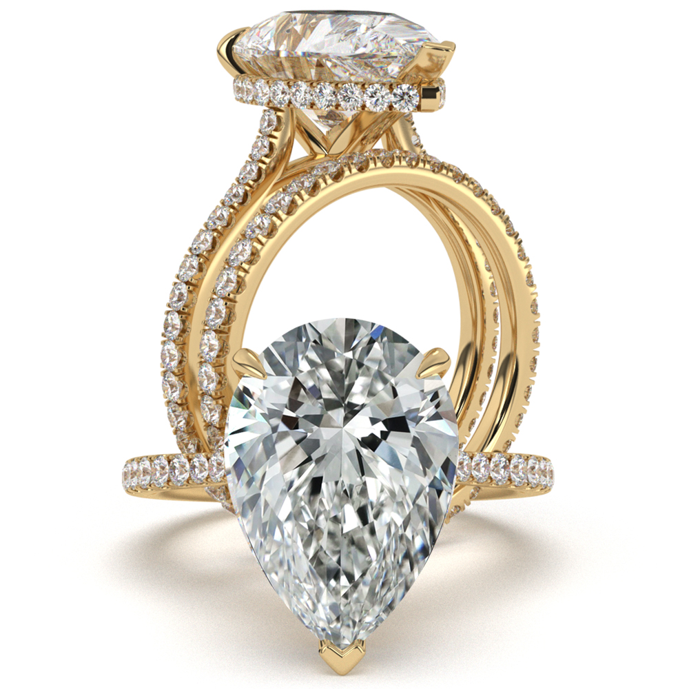• Cathedral French Pave Pear Halo Diamond Bridal Sets Wedding Ring Gold Y14k 1.02Ct.