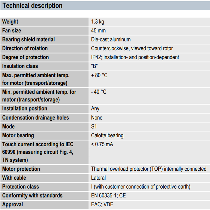 | R0070301 | M4Q045-EA01-01 | 25 W | 90 W | 0.62 | 2 kg | 1300r/min | 240V |