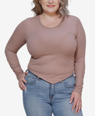 Just Polly's plus size ribbed top takes a T-shirt in a new direction thanks to the V-hem and ultra-fitted silhouette.