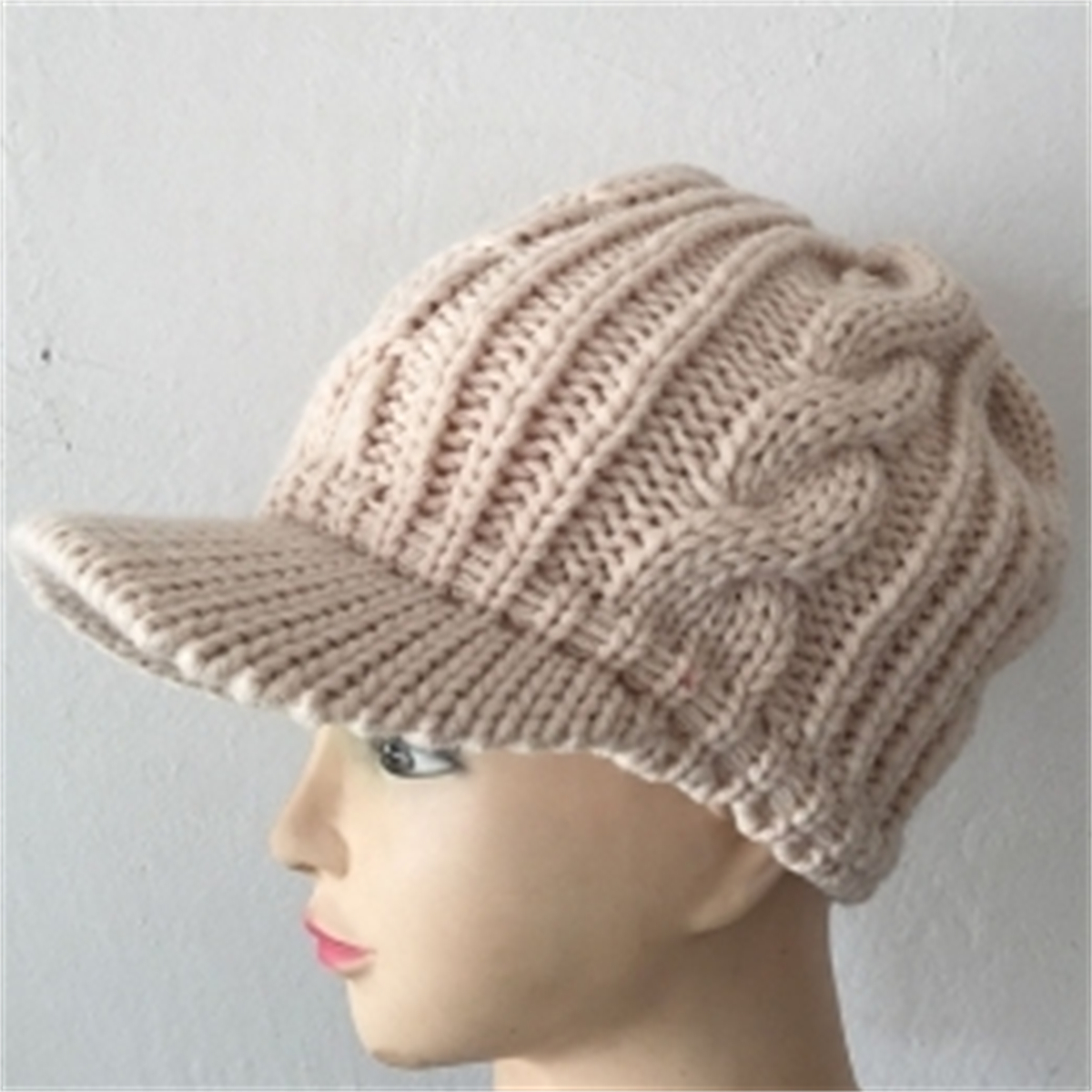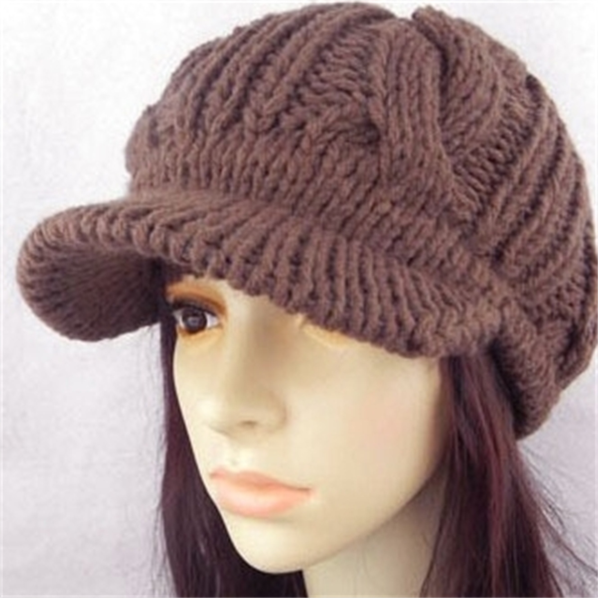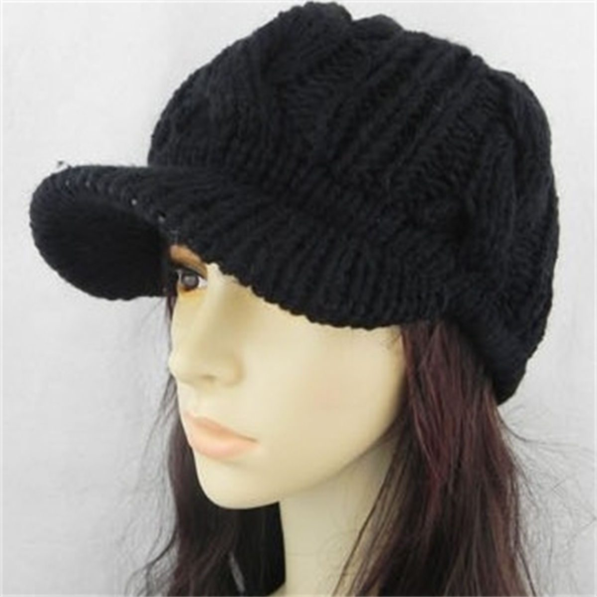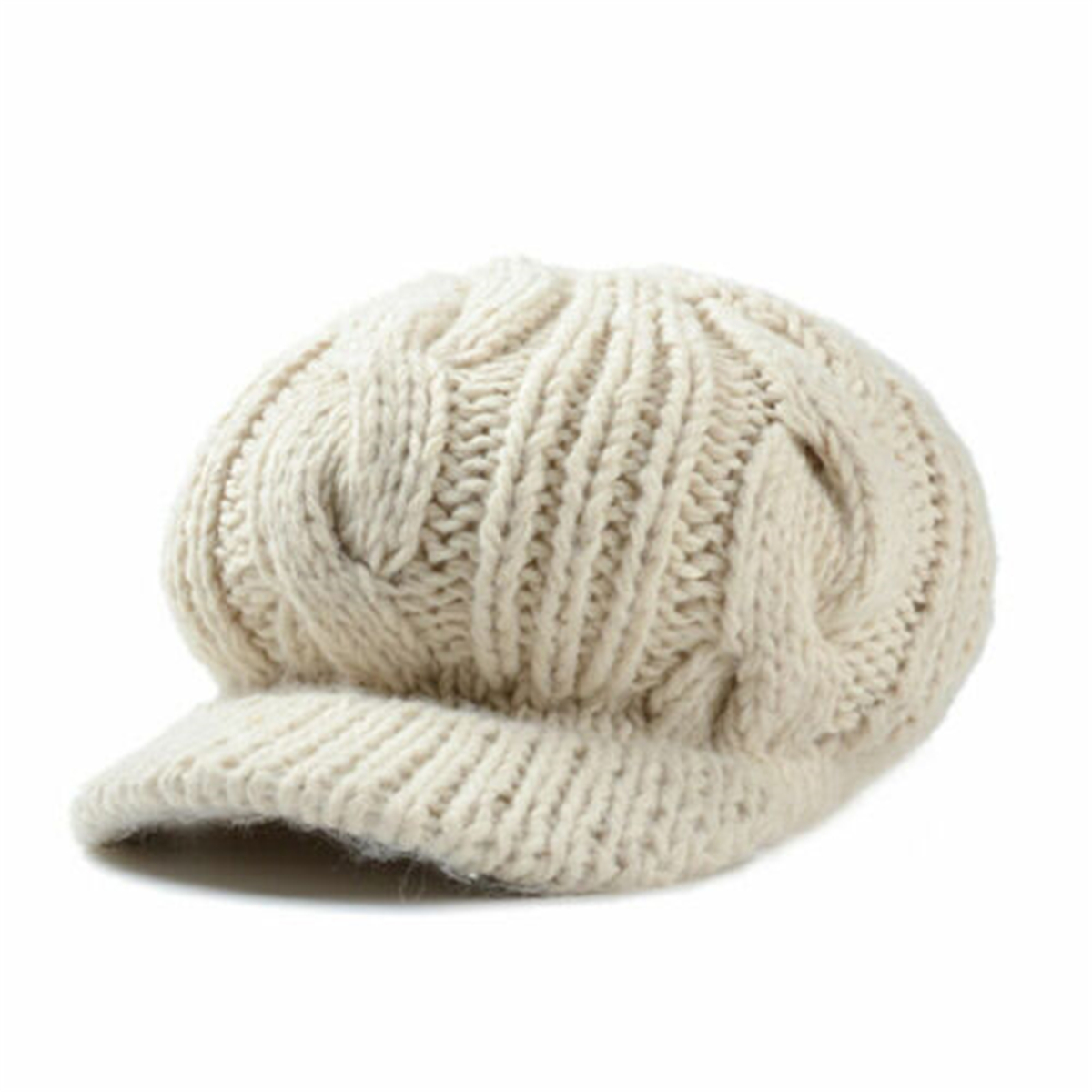 Women Winter Warm Knitted Hats Slouchy Wool Beanie Hat Cabbie Cap With Visor