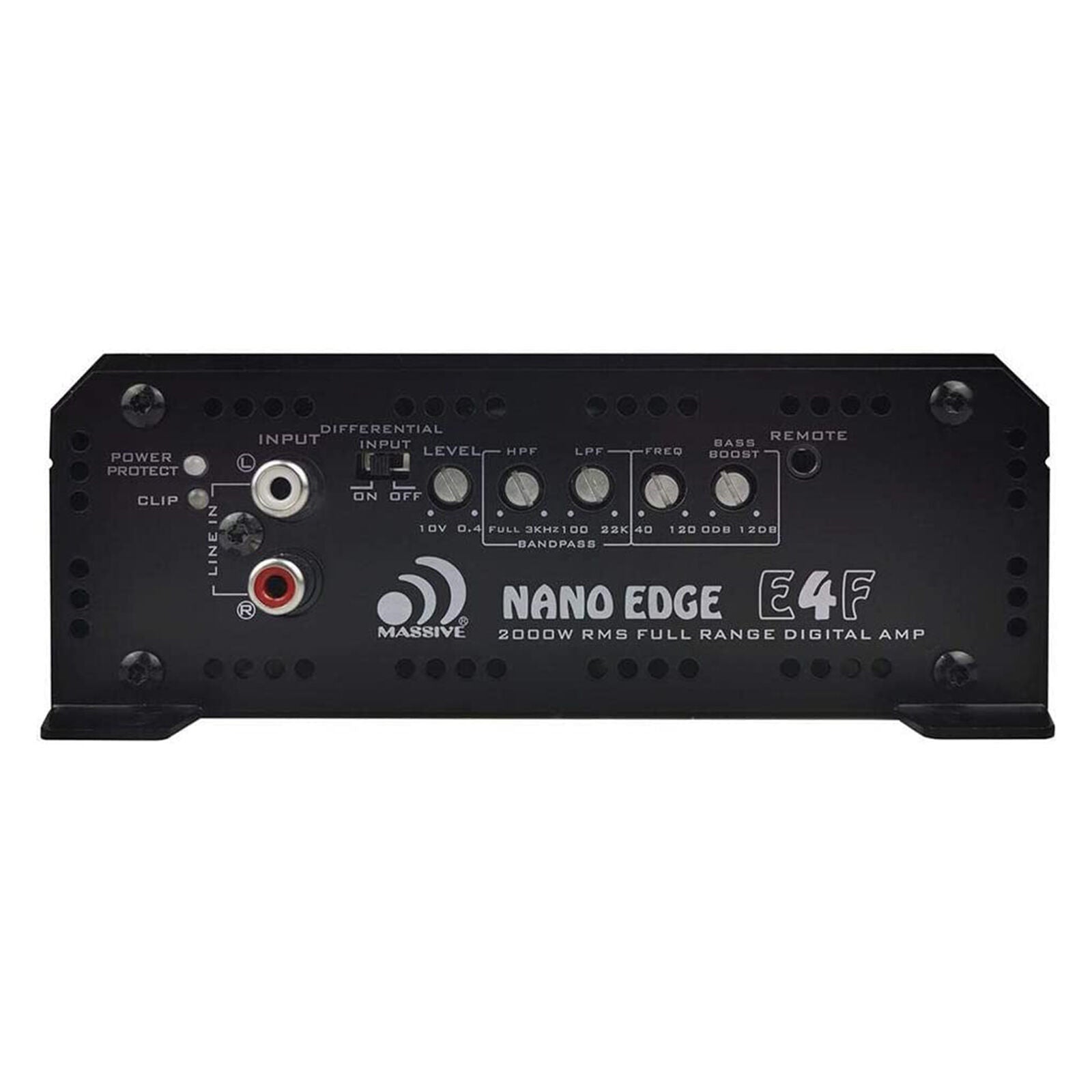 Don't let its diminutive size fool you, this ultra-compact Massive Audio E4F "EDGE" Series Amplifier is a Class D powerhouse capable of up to 2000 Watts RMS at 1 Ohm. With a frequency range of 25Hz - 18KHz, this amplifier will deliver high current for Subwoofers, Mid-Range, and Full Range Speakers!