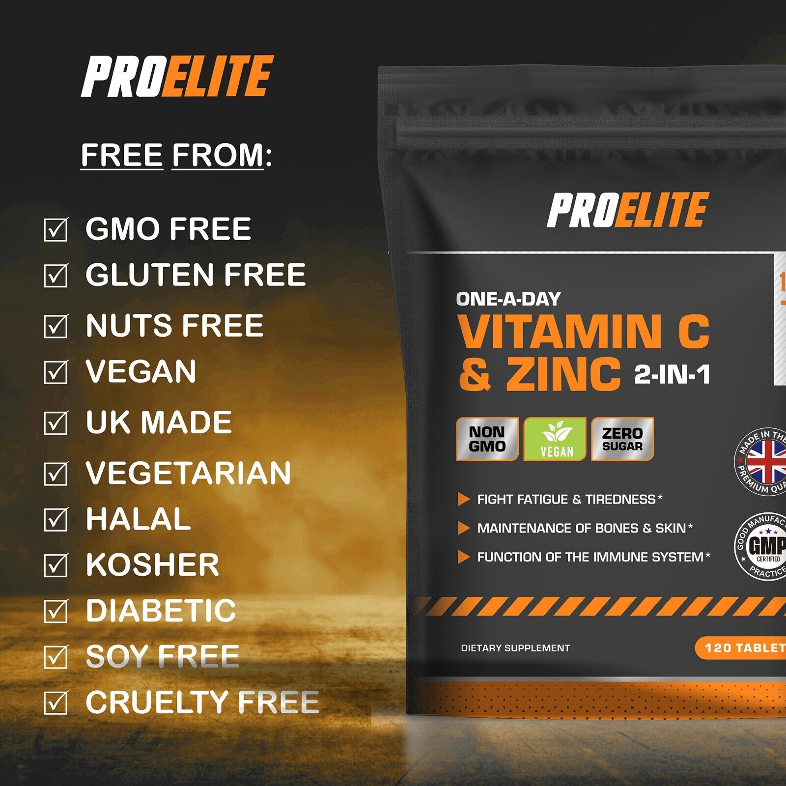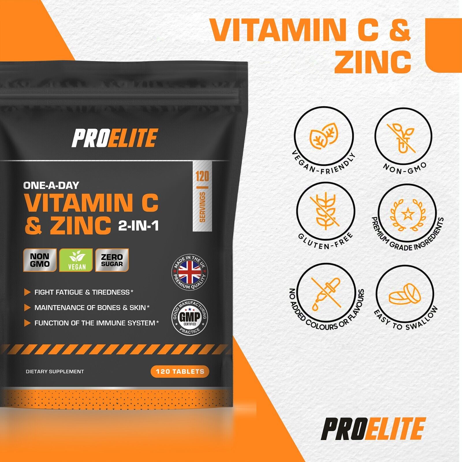 PROELITE VITAMIN C & ZINC is like no other product on the market! containing an advanced formulation of Zinc, and Vitamin C which contribute to the normal function of the immune system and to the protection of cells from oxidative stress.