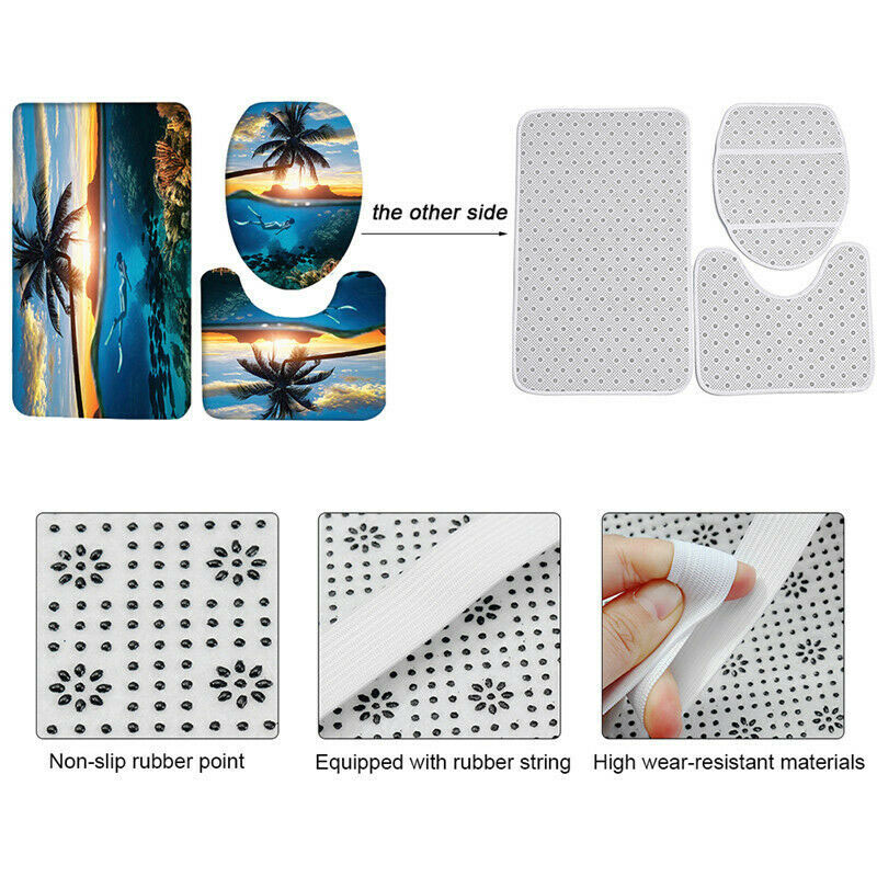 PREMIUM MATERIAL: The pattern is made of polyester fabric, has a good waterproof effect, the bathroom mats is comfy, non-toxic and do not fade, skin soft, waterproof and durable.