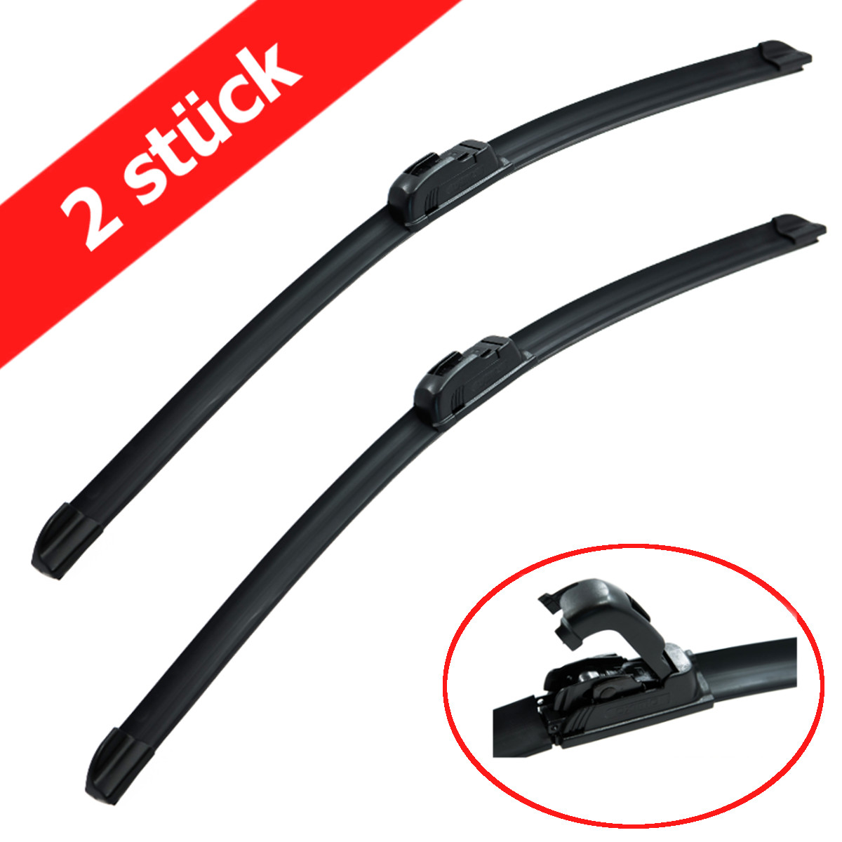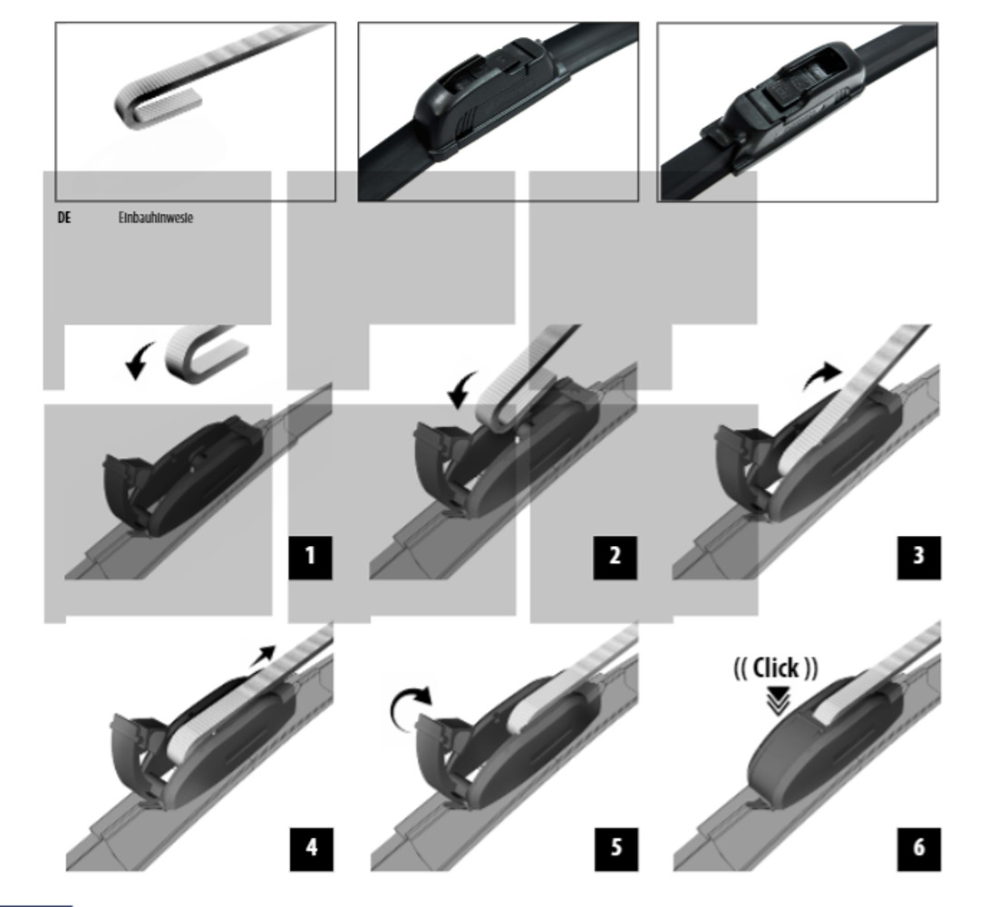 Leichte und schnelle Montage der Scheibenwischer gewährleistet durch eine Spezialhalterung, die an die vom Autohersteller vormontierte Halterung passt.