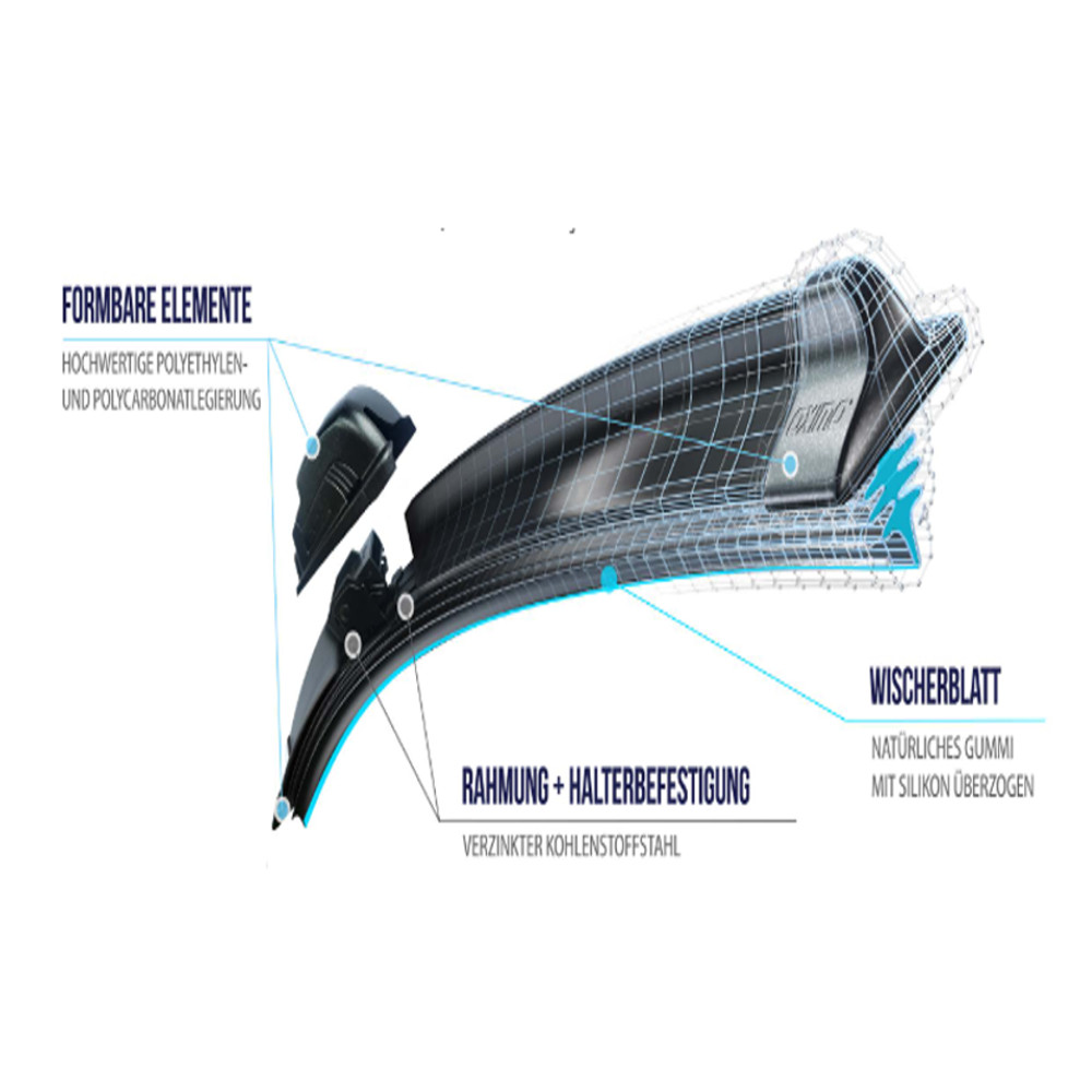 Artikelbeschreibung: Silikon beschichteter Gummi der Wischer reduziert Geräusche und wirkt sich positiv auf den Arbeltskomfort.