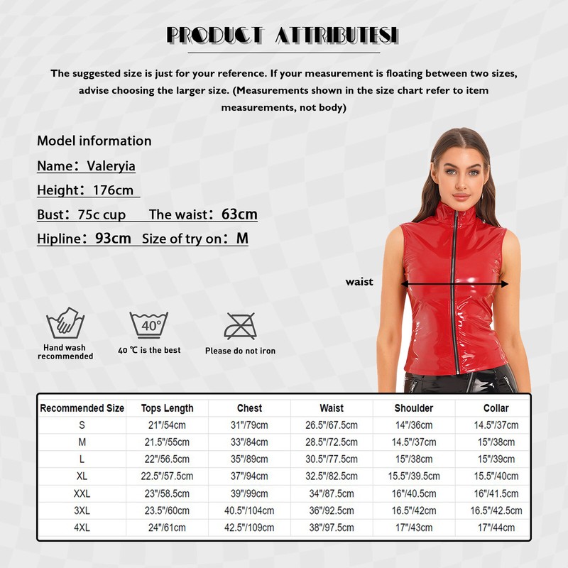 Sleeveless vest tops for women, stand collar, front zipper closure, easy to put on and off, simple but stylish design.
