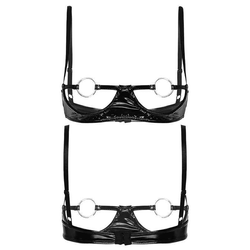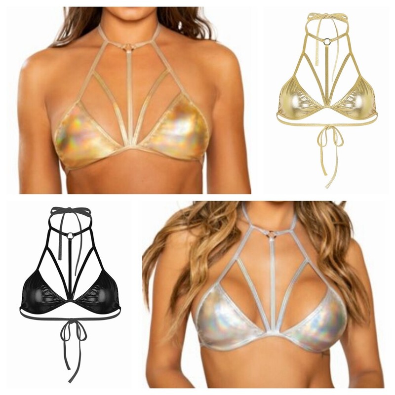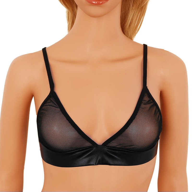 Women Leopard Print Faux Leather Unlined Wireless Bra Underwear Adjustable Spaghetti Strap Bikini Top.