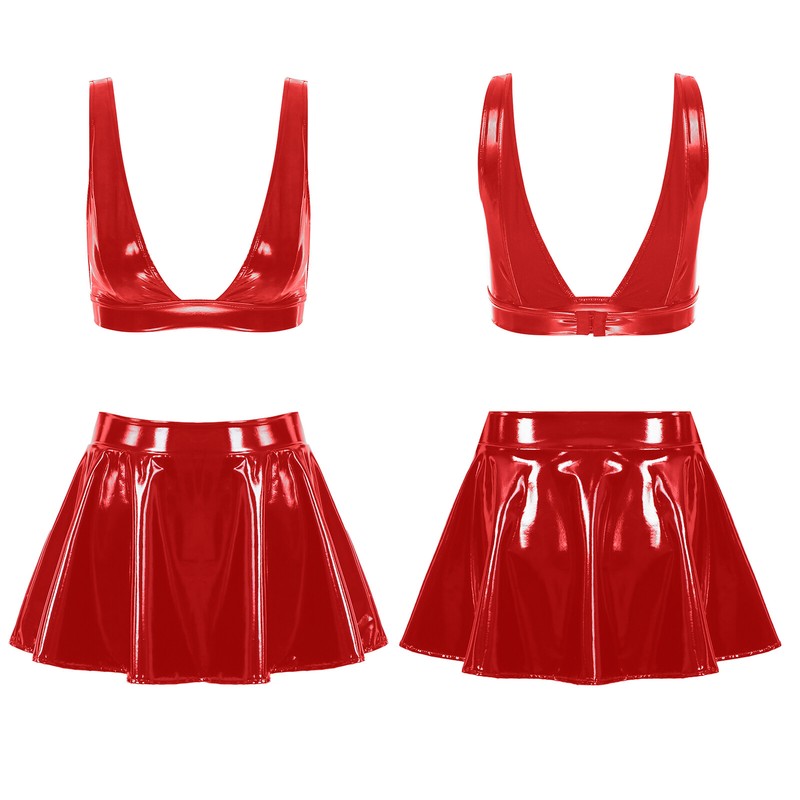 A-line flared skirt with hidden zipper. Glossy appearance set.