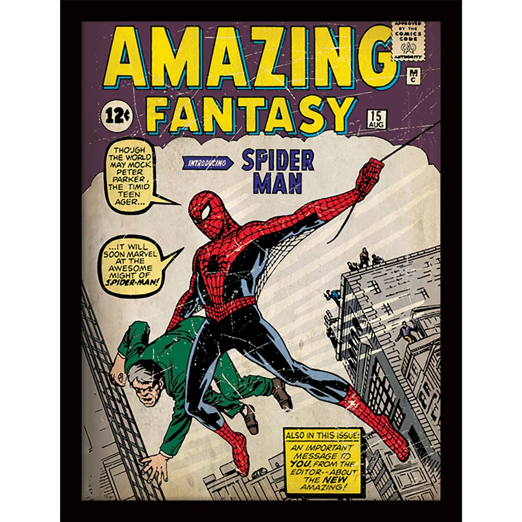 An officially licensed Marvel Comics framed print available to buy direct from the publisher with free UK delivery. The 30 x 40cm print is framed in a wood effect black wrapped MDF frame with clear plastic glazing making it safe, lightweight and easy to hang using the sawtooth bracket attached on the back. The overall size of the picture is approx 33 x 43cm including the frame. Other designs can be purchased in our shop with multi-buy discounts available.
