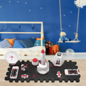 FAO Schwarz Space Station Circuitry Experiment Set lets you build your own experiments that are powered with real electricity! Create these fun circuitry projects with 3 push-button modules, including a launching rocket, particle an, and Spinning Antennae. Conduct unique experiments that teach the different principles and nuances of electrical engineering and circuitry design. Easy-to-use modules and clear instructions will keep the fun and excitement coming. Perfect as a STEM toy, the circuitry experiment building set puts real science to work in a fun way. Kinetic action and real circuits teach real-life electricity principles and encourage deeper learning. Learn how to engineer your own experiments and the different things electricity can do.