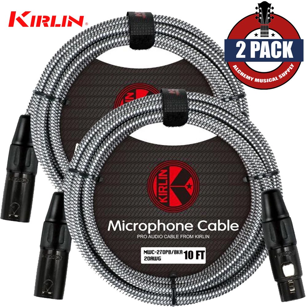 2-PACK Kirlin 10FT Woven 20AWG XLR M to XLR F Microphone Cable Silver MWC-270PB-10/BKA