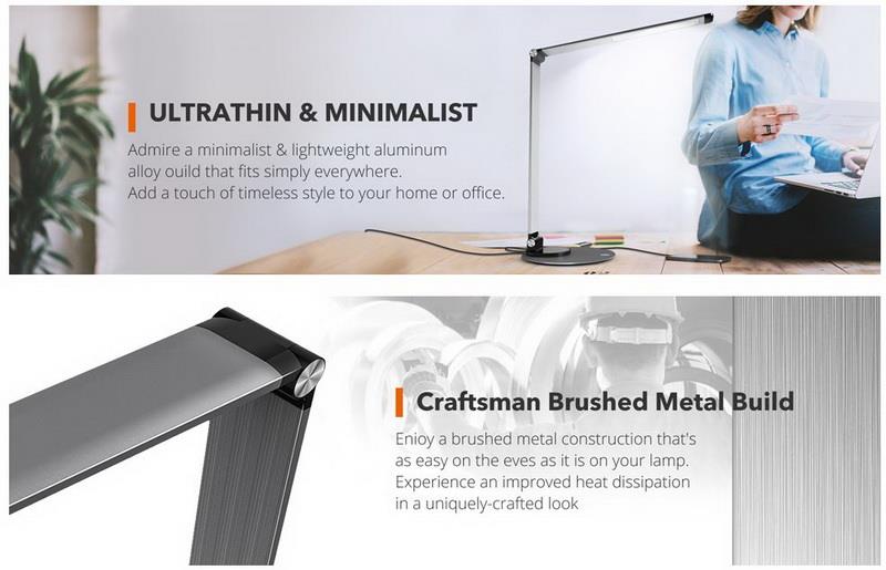 - Futuristic lighting with a contemporary look: ultra-slim arms and base with anodized/brushed aluminum finish adds style to your home/office