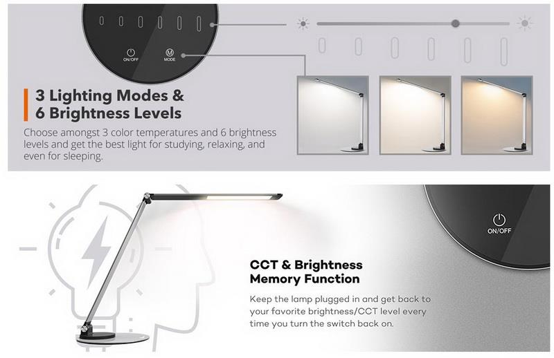 - 18 adjustable light choices: 6 brightness levels and 3 lighting modes to choose from, non-ghosting and non-flickering lighting ideal for work, study, reading and relaxing
