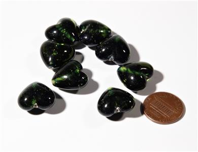 Lot (8) vintage Czech Bohemian hand spun lampworked aventurine gold swirl dark green heart shaped glass beads. Premium quality Czech vintage glass beads. Each bead will be different as they are all handmade.