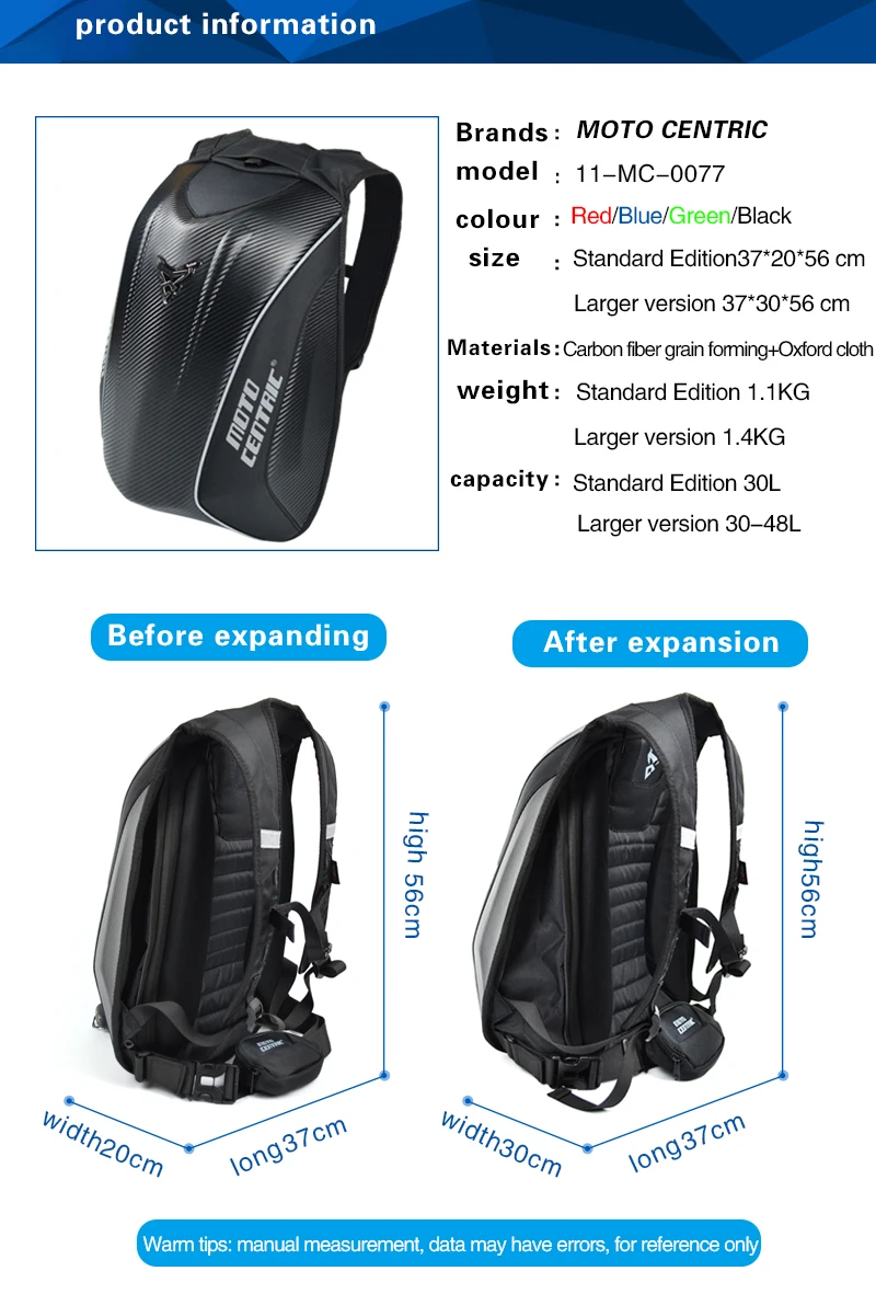 Motocentric Motorcycle Backpack Helmet Bag Waterproof Carbon Fiber Moto Backpack