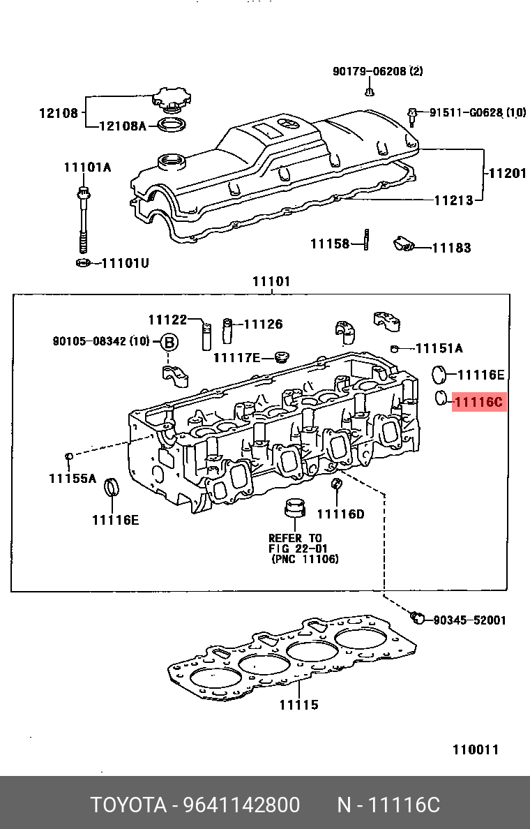 Genuine OE plug, tight, no.1 for cam housing, 9641142800 for TOYOTA 96411-42800
