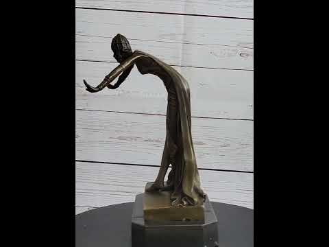 Crafted using the revered "Lost Wax Method," this sculpture exemplifies the meticulous craftsmanship involved in its creation. Mounted on a black beveled marble base, it exudes a sense of sophistication and grandeur. The sculpture is signed by the renowned artist Chiparus, further enhancing its value and quality. The two-tone brown patina accentuates the sculpture's details, creating highlights and shadows that bring the artwork to life.