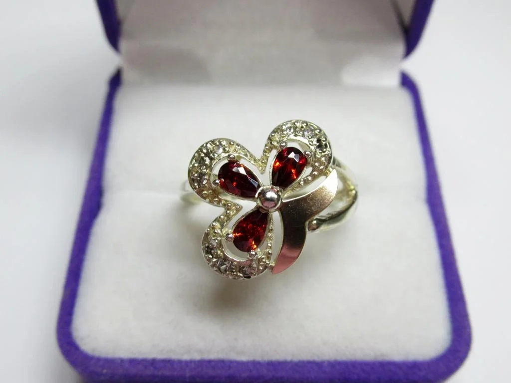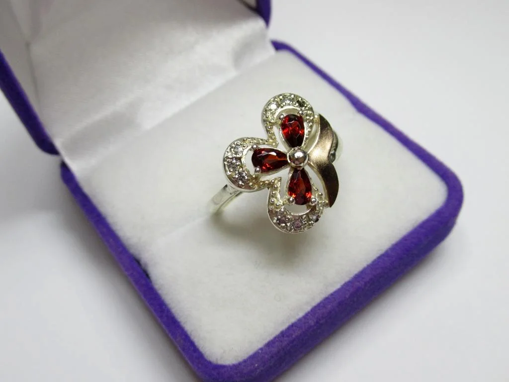 Elegant vintage ring crafted in solid 925 sterling silver, accented with 9k gold (375) details. The design features a beautiful floral-inspired setting set with sparkling cubic zirconia stones, giving the ring a refined and eye-catching look.