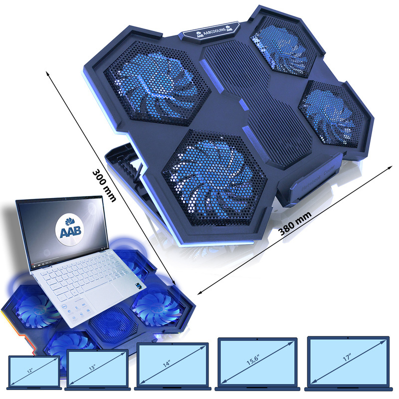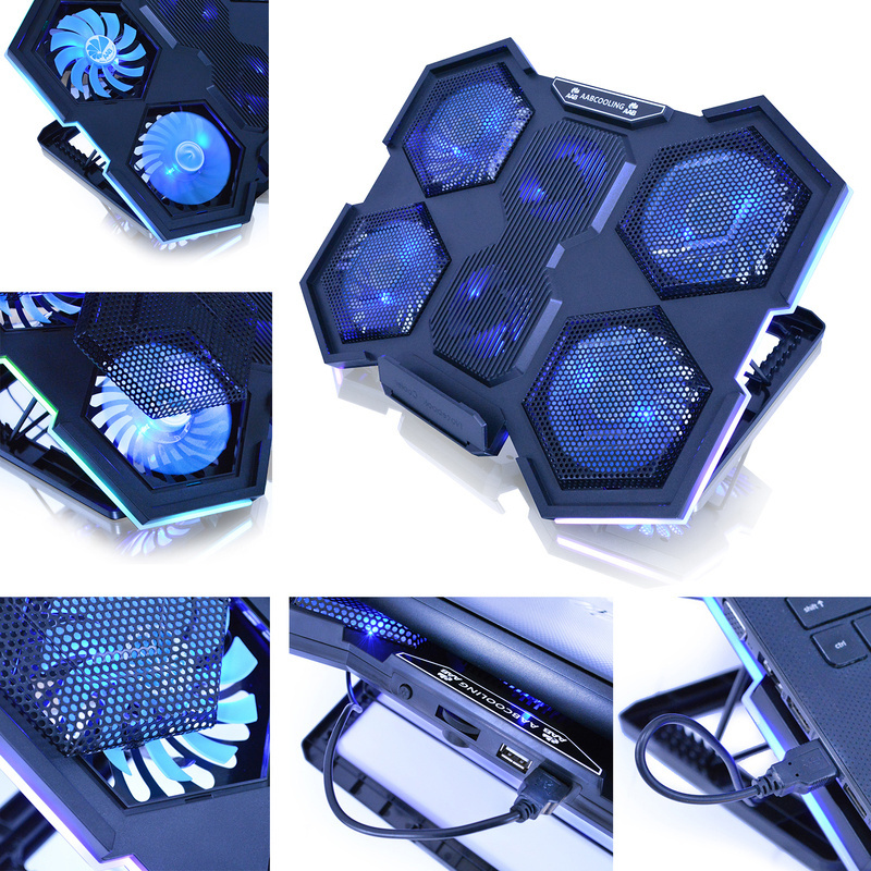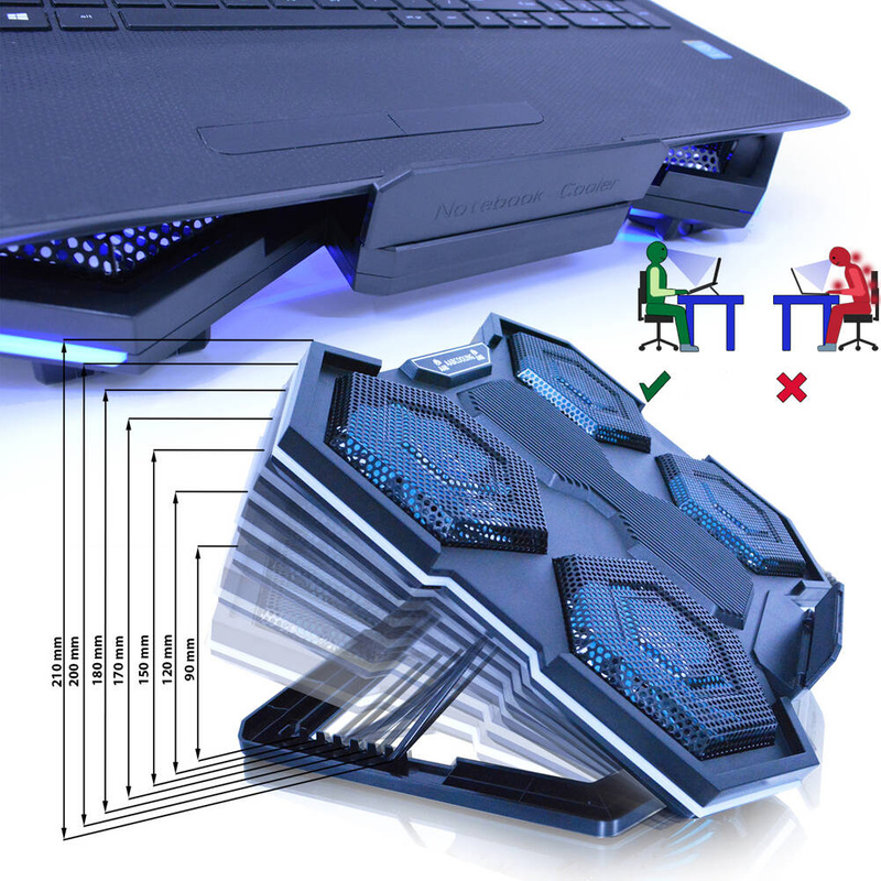 ![]() AABCOOLING Hurricane Schwarz Notebookständer (Seitliche RGB-Hintergrundbeleuchtung - Ein-/Aus-Steuertaste) - es ist in erster Linie ein modernes Aussehen, stabile Bauweise und die leistungsstarken Lüfter mit Drehzahlregelung. Ventilator Platzierung bietet einen hervorragenden und effektiven Kühlung Laptop unabhängig von der Lage der Heizanlagen Notebook-Komponenten (CPU, Grafikkarte, Netzteile, Laufwerke).Umfassende Kompatibilität mit Laptops und notebook'ami Matrizen in verschiedenen Größen 10,12,13,14,15.6, 16, 17". Das Design ermöglicht die Verwendung der Laptop Ständer auf dem Knie hält. Die hydraulische FDB Gleitlager sind sehr lautlos. Der Kühler verfügt über die höhenverstellbare Füße