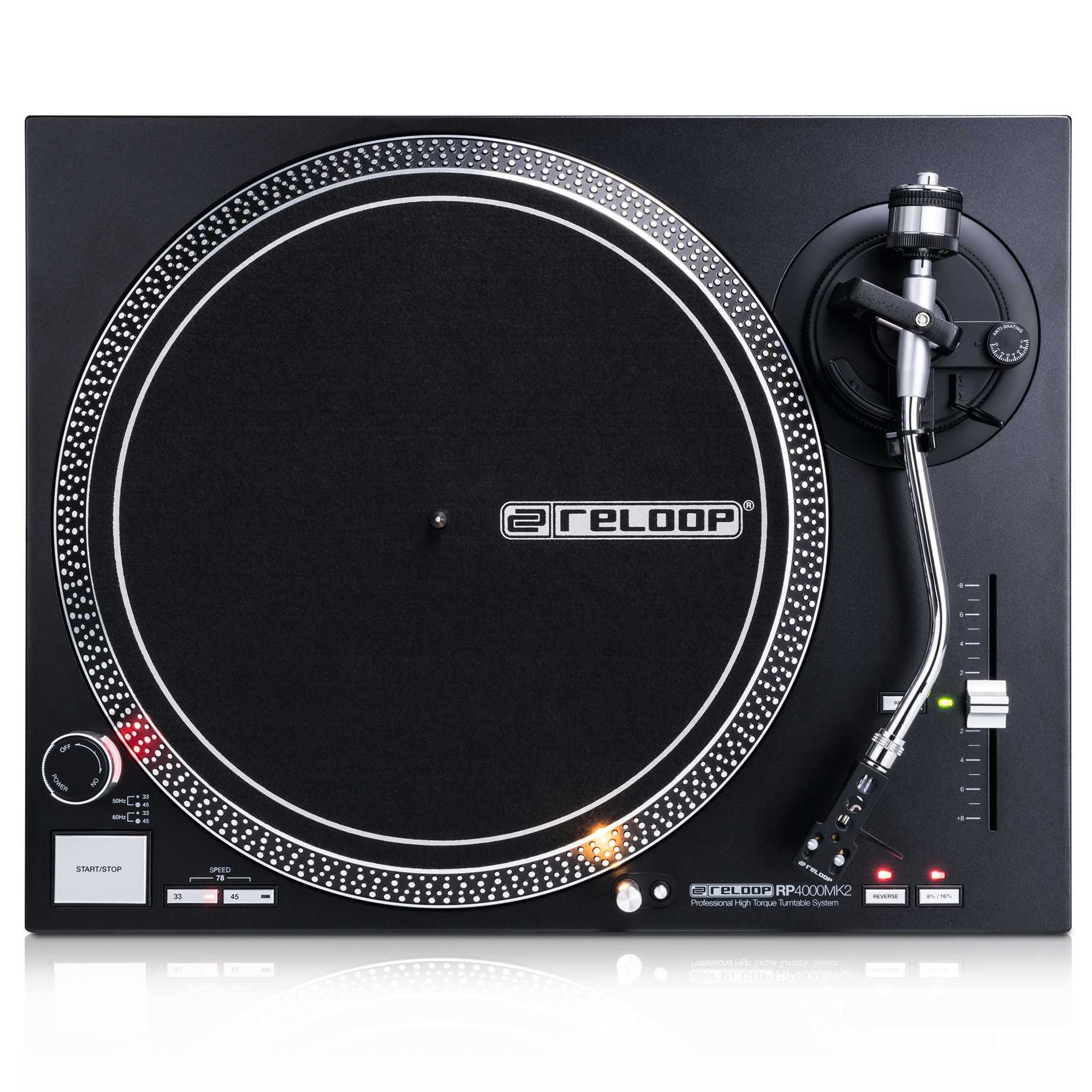 Quartz-driven DJ turntable with high-torque direct drive The rp-4000 mk2 is a solid dj turntable for advanced users. The new mk2 version comes with several improvements, including a newly developed top panel and reworked metallic buttons with enhanced feel as well as a variety of functions. Surroundings. Precise motor control with 3 speeds The precision-engineered die-cast platter is accelerated by a powerful motor with a high-torque direct drive of more than 1.8 kg/cm. The precise motor control with 3 speeds (33 1/3, 45 & 78 rpm) allows for the rp-4000 mk2 to play back any record. The pitch section with a selectable range of +/-8% and +/-16%, respectively, is suitable for the finest pitch adjustments. Statically balanced s-shaped tone arm The rp-4000 mk2 features a statically balanced s-shaped tone arm with hydraulic lift and anti-skating mechanism. Via the universal connection for pick-up systems (sme) a large number of pick-up systems can be connected. In denmark, pre-fitted to a headshell ready for immediate playback. Newly developed top panel and sturdy housing design The new deep black metallic top panel construction is equipped with metallic buttons for start/stop, platter speed, pitch control, reverse function and tempo reset. The improved touch upon hit offers a clear haptic feedback. The sturdy construction with optimized damping features and shock-absorbing feet improve isolation from unwanted vibrations. Features • New in the MK2 version: • Newly developed top panel and reinforced housing construction • Reworked metallic buttons with improved feel & tactile response • Precision pitch with selectable ranges of +/-8 % & +/-16 % • Tempo reset (quartz lock) feature • Superior finish in deep black metallic • Quartz-driven DJ turntable with high-torque direct drive • Designed for professional use • Powerful brushless DC motor with more than 1.8 kg/cm torque • Precise motor control with 3 selectable speeds (33 1/3, 45 & 78 rpm) • Reverse function: switch for forward/reverse playback • Precision-engineered die-cast aluminium platter with stable rotation • Statically balanced S-shaped tone arm with hydraulic lift and anti-skating mechanism • Universal connection for pick-up systems (SME) • Extendible needle illumination • Shock-absorbing feet for vibration isolation • Sturdy, heavy construction with optimized damping features • Prepared for dust cover (available as optional accessory) • Incl. platter, Reloop OM Black cartridge (by Ortofon), headshell, slipmat, counterweight, power cord, instruction manual TECHNICAL DATA Turntable: • Type: direct drive turntable • Drive: quartz-driven high-torque direct drive • Motor: 8-pol., 3-phase, brushless DC motor • Turntable speeds: 3 speeds, manual (33 1/3, 45, 78 rpm) • Starting torque: > 1.8 kg/cm • Brake time: 1 sec. • Start-up / rpm change: 1 sec. • Wow and flutter: < 0.2 % WRMS • Signal-to-noise ratio: > 50 dB (DIN-B) • Brake system: electronic brake • Record weight: recommended 800g Platter: • Material: aluminium die-cast • Diameter: 332 mm • Tone arm: • Type: universal, statically balanced, s-shaped • Effective length: 230.5 mm • Overhang: 16 mm • Tracking angle error: 3° • Applicable pick-up weight: 3.5 - 8.5 g (incl. headshell 13 - 18 g) • Anti-skating range: 0 - 7 g Connections: • 1x Phono out (gold-plated), 1x GND • General: • Power supply: AC 115/230 V, 60/50 Hz (EU/US), AC 100 V, 50/60 Hz (JP) • Power consumption: 12 W • Dimensions: 450 x144 x 352 mm • Weight: appr. 9.8 kg