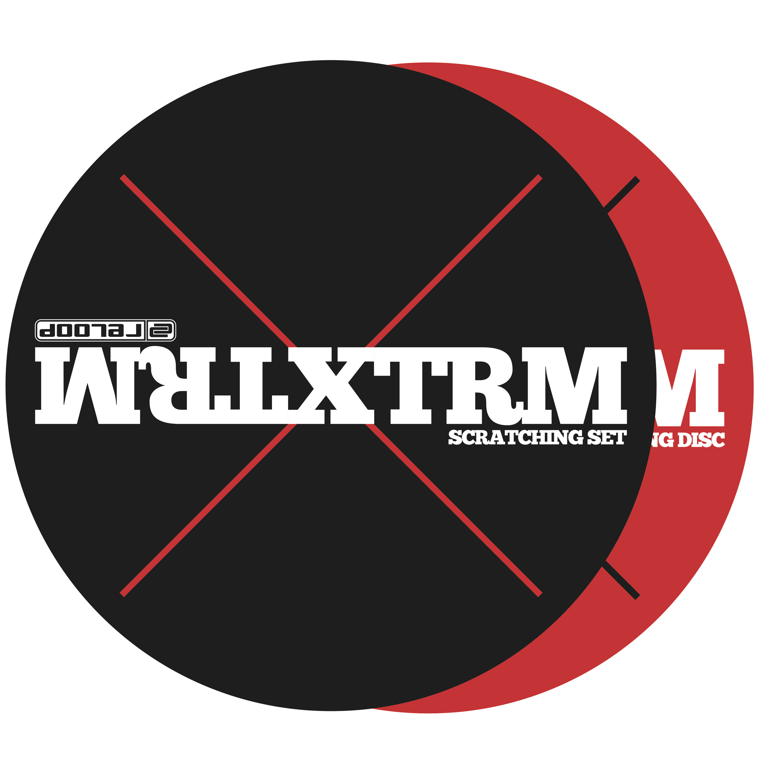 Two Piece Scratch Slipmat System. Set of two complementary slip mats, one black, one red, both with XTRM graphic.