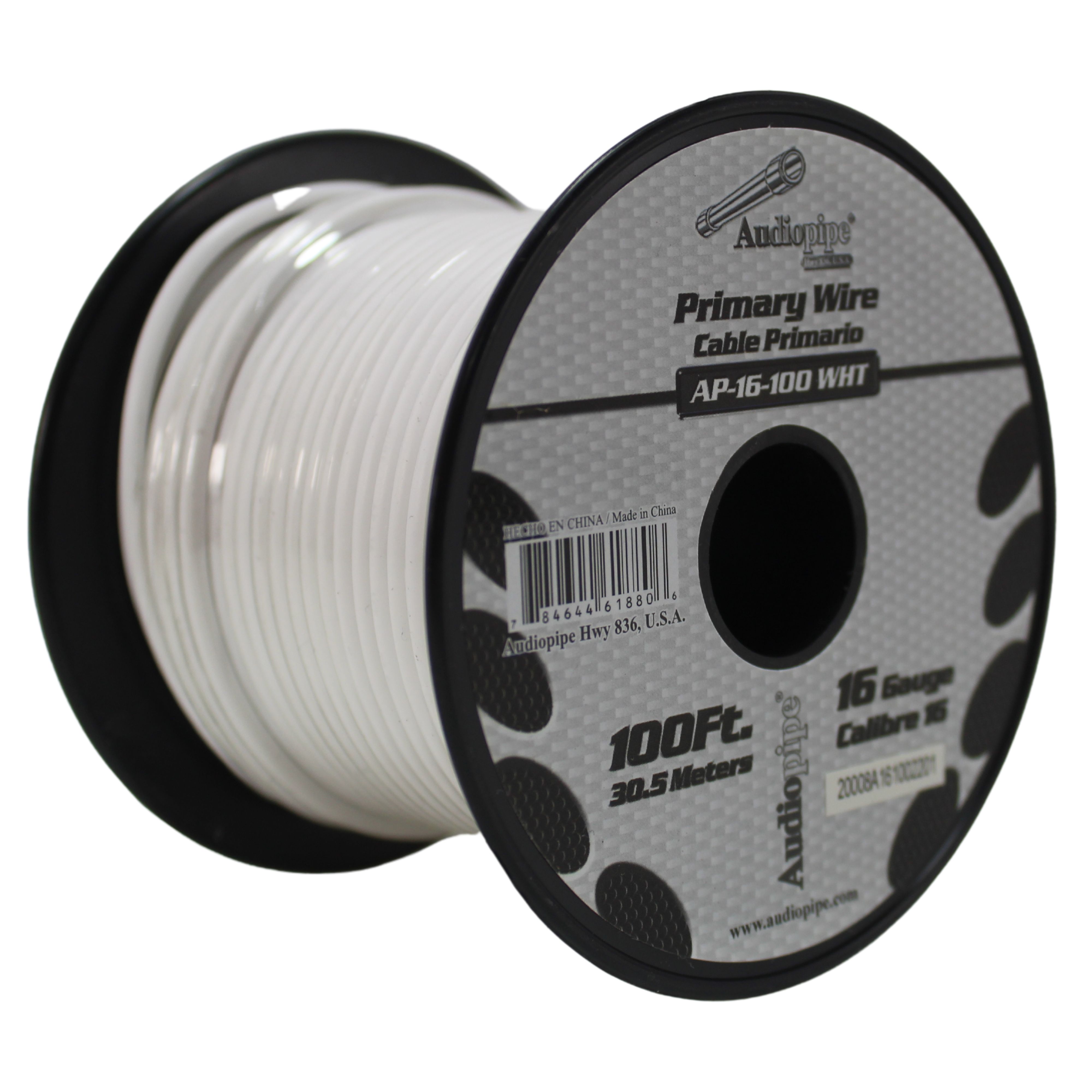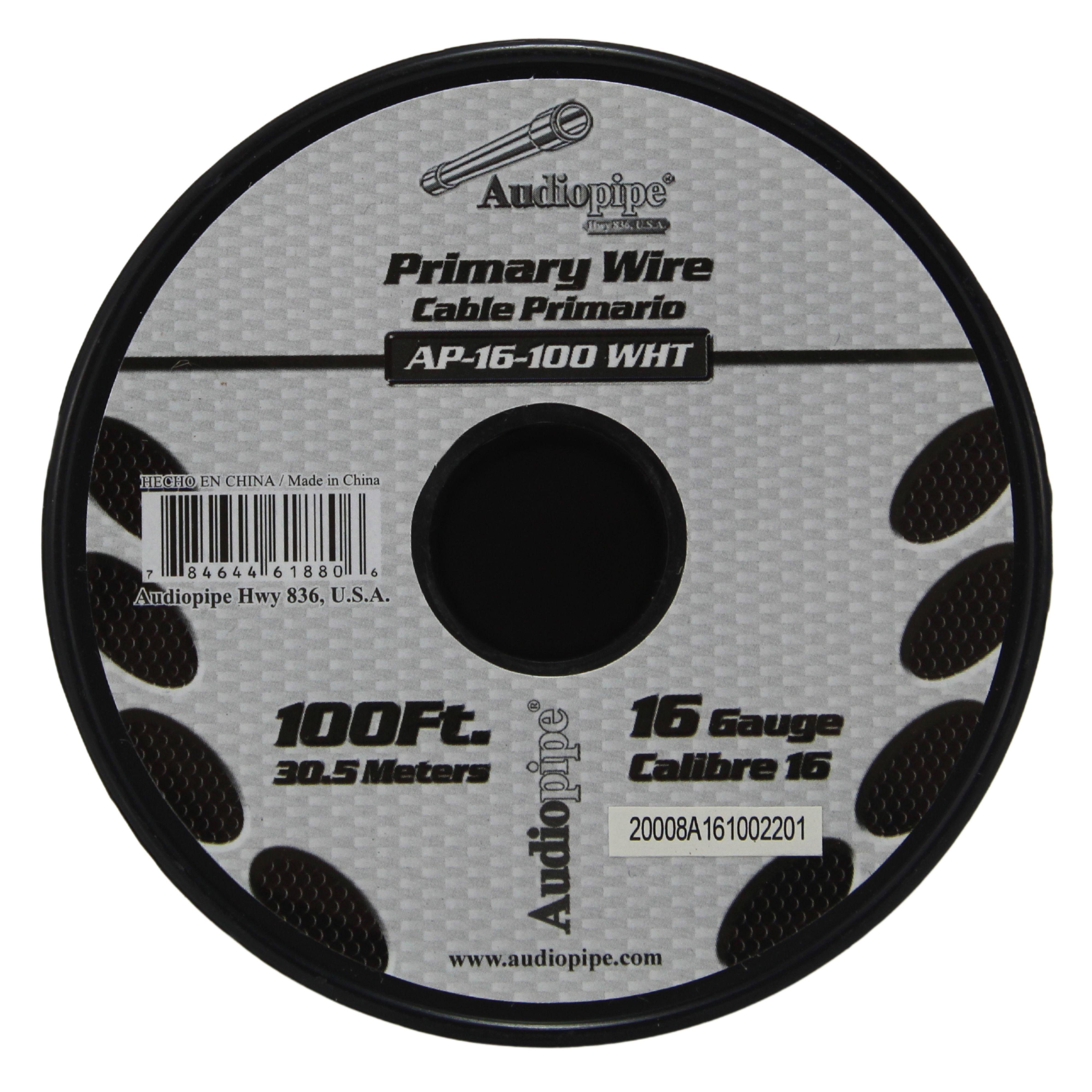 Audiopipe 16 Gauge 100 ft Spool of CCA Primary Speaker Wire White 16-100-WHT