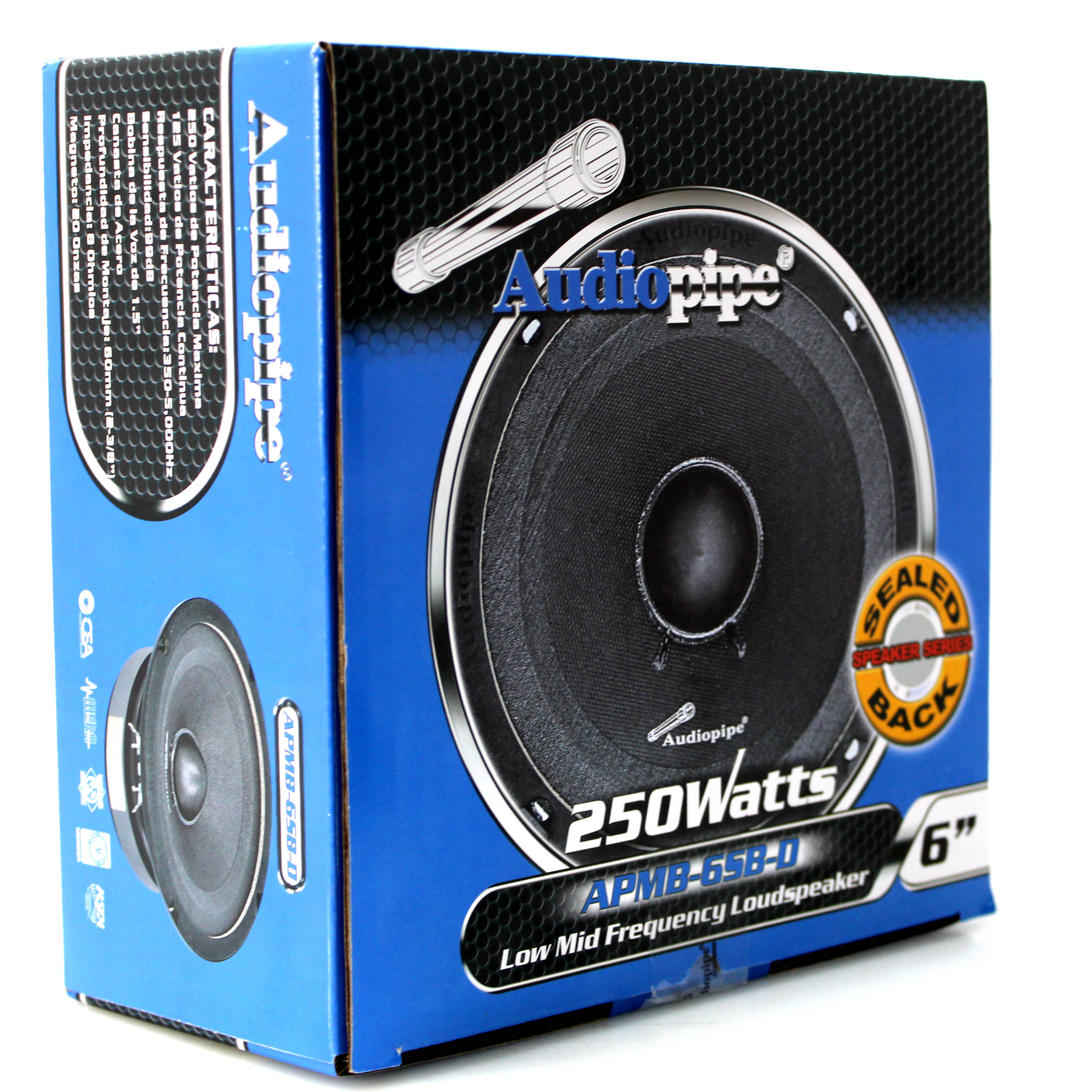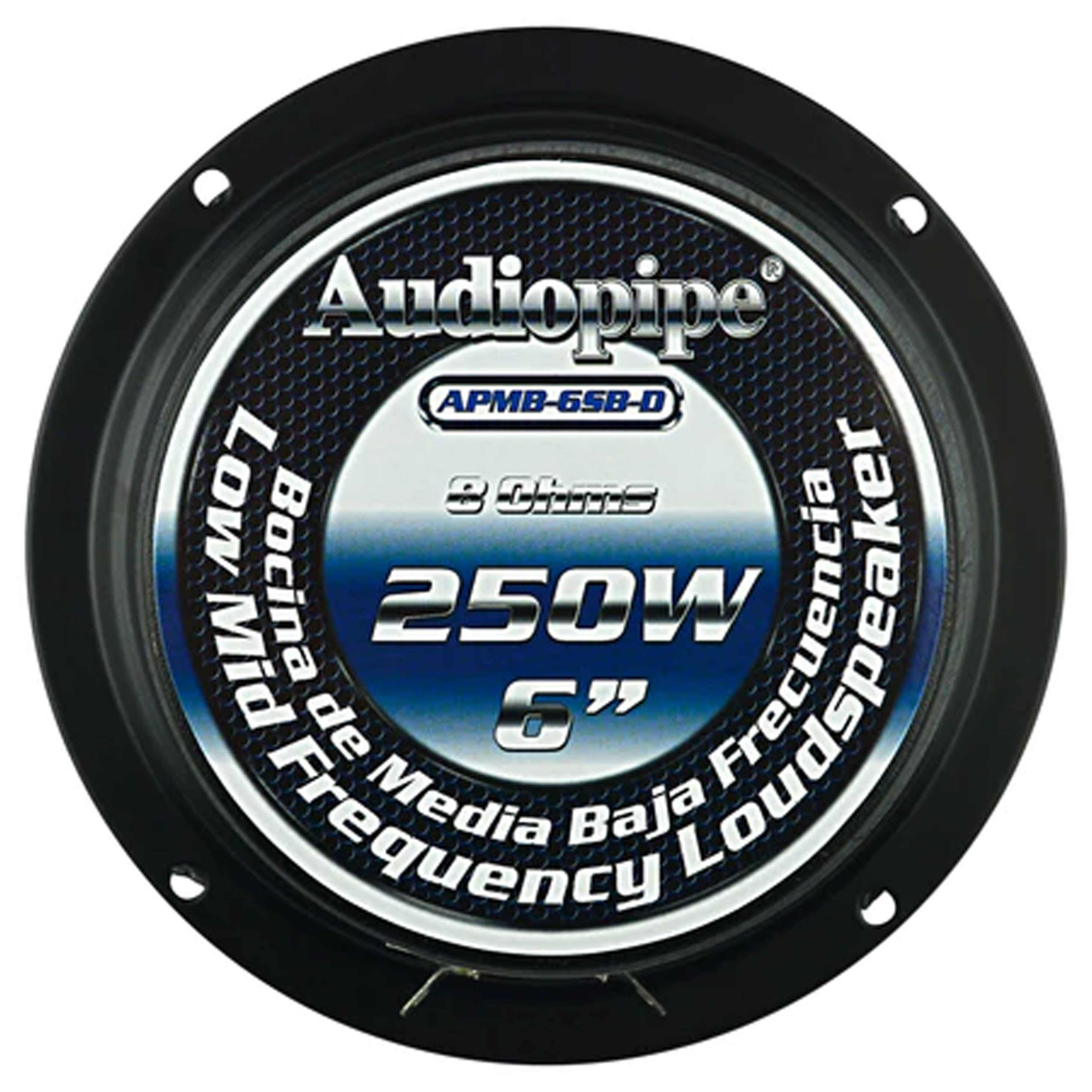 (2) Audiopipe 6 Sealed Mid Bass Loud Speaker 250W 8 ohms 1.5 Voice Coil Black