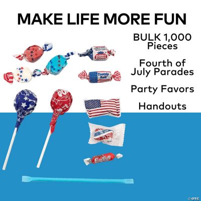 A huge supply of patriotic candy that's ideal for Fourth of July parades, party favor bags and celebration giveaways! Delicious and classic sweets that are sure to please kids and adults alike. This assortment features, lollipops, gum and many more patriotic candy picks from your favorite brands! Try using these candies to fill parade buckets or candy buffet containers. Individually wrapped. Assortment may vary.br
