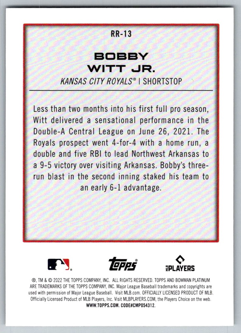 | 2021 Bowman Renowned Rookies RR-13 Bobby Witt Jr. |