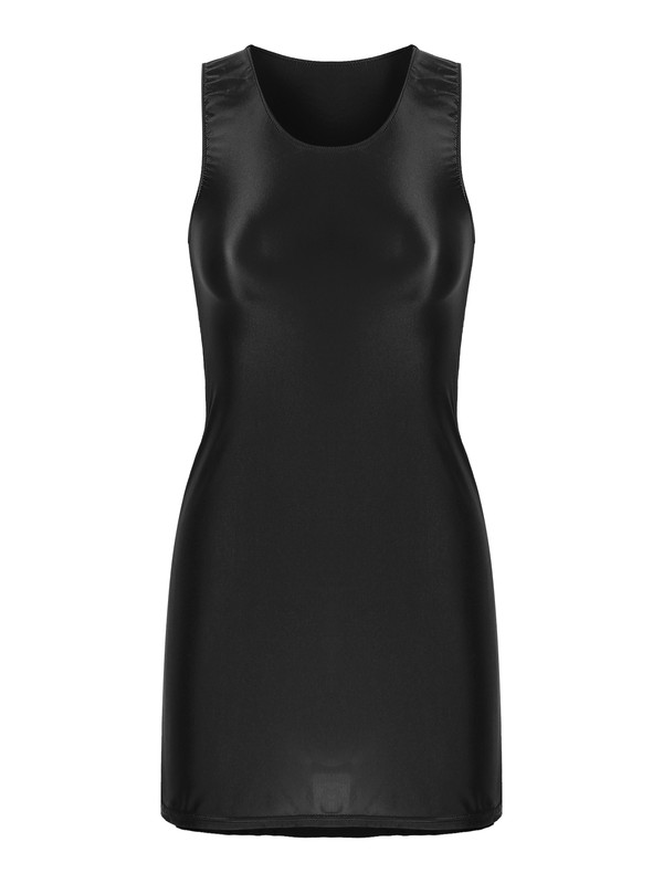 Womens Glossy Smooth Bodycon Dress Sleeveless U Neck Sundress Tank Dresses.