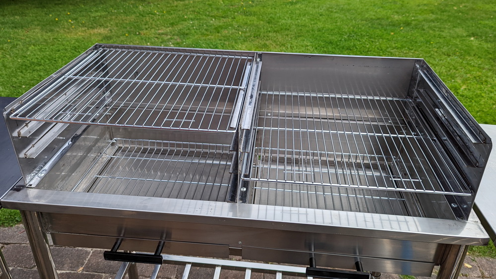 Großer Edelstahl Grilltisch mit 2 höhenverstellbaren Grillflächen