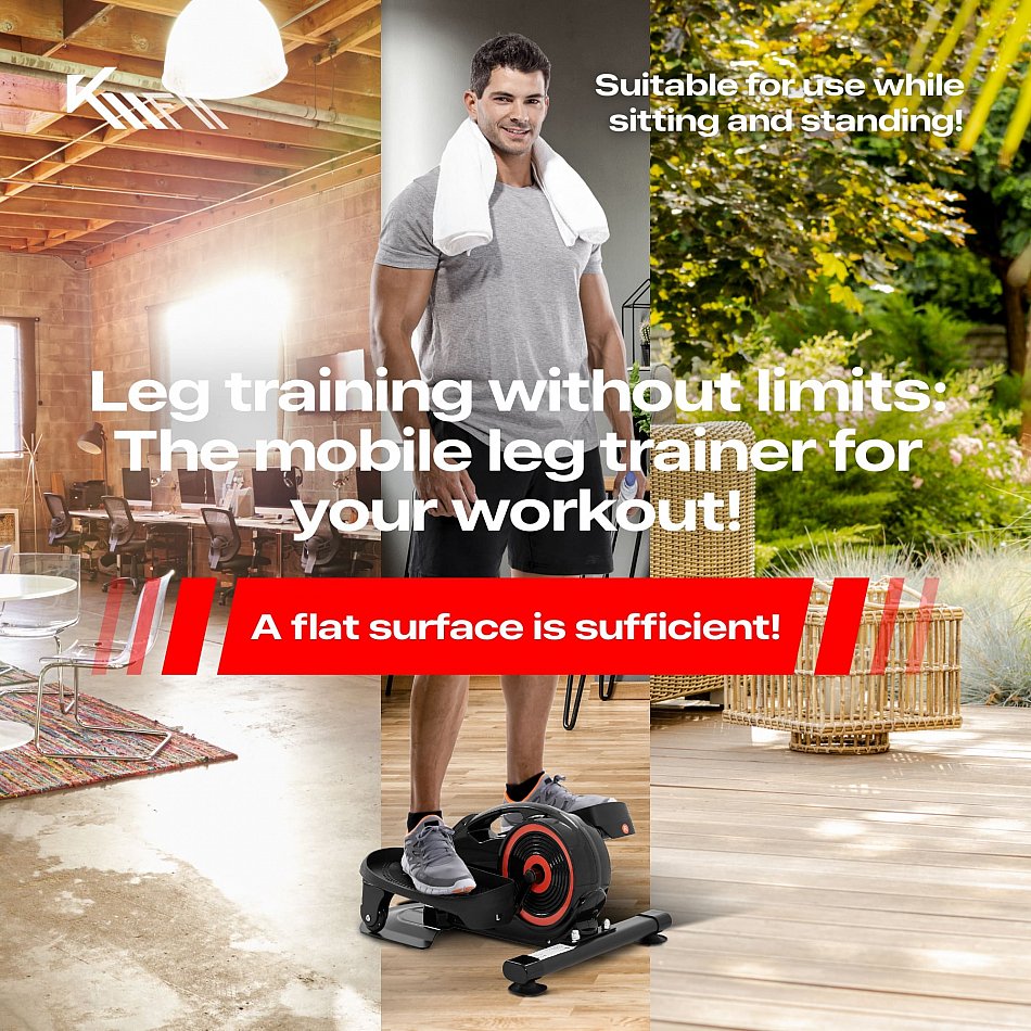 Grazie alla maniglia di trasporto e al peso ridotto, potete portare il nostro leg trainer ovunque. Che siate a scuola o al lavoro, o anche solo a casa mentre lavorate o guardate la TV, è pronto all'uso 24 ore su 24, 7 giorni su 7. Grazie al movimento ellittico, questa macchina per l'home fitness può essere utilizzata in piedi o da seduti. Allenamento delle gambe efficace sia per i principianti che per gli utenti più esperti.