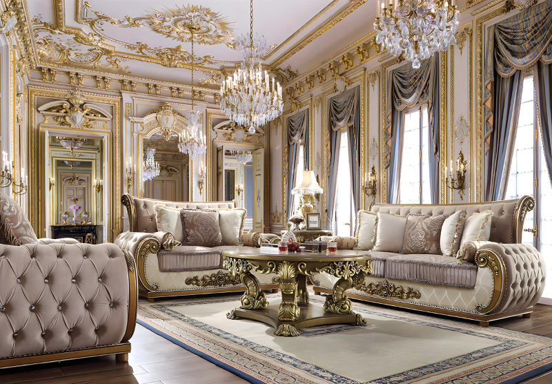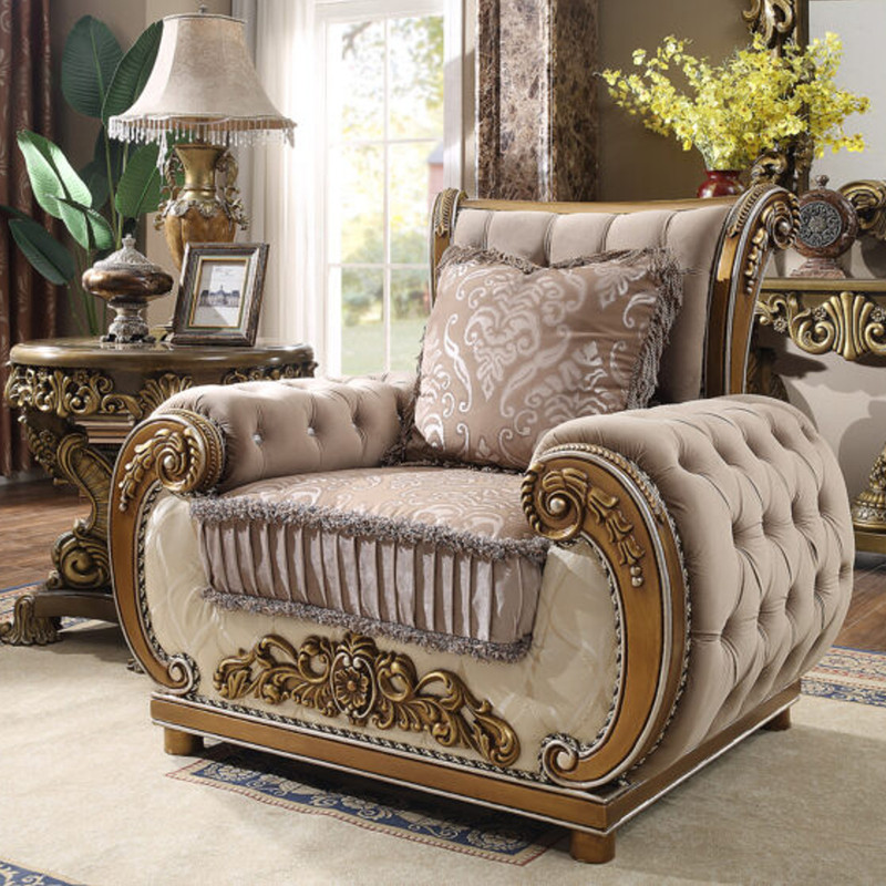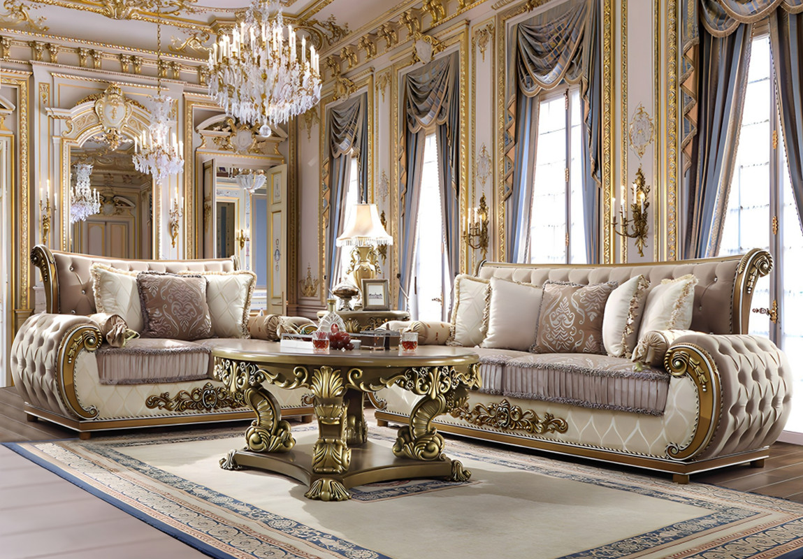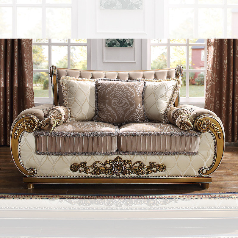 This collection is upholstered with Rich European Luxury Fabric and wood trim all around in perfect brown & beige finish. Complimented by stylish accent pillow, this Sofa Set is both lavish and breathtaking.
