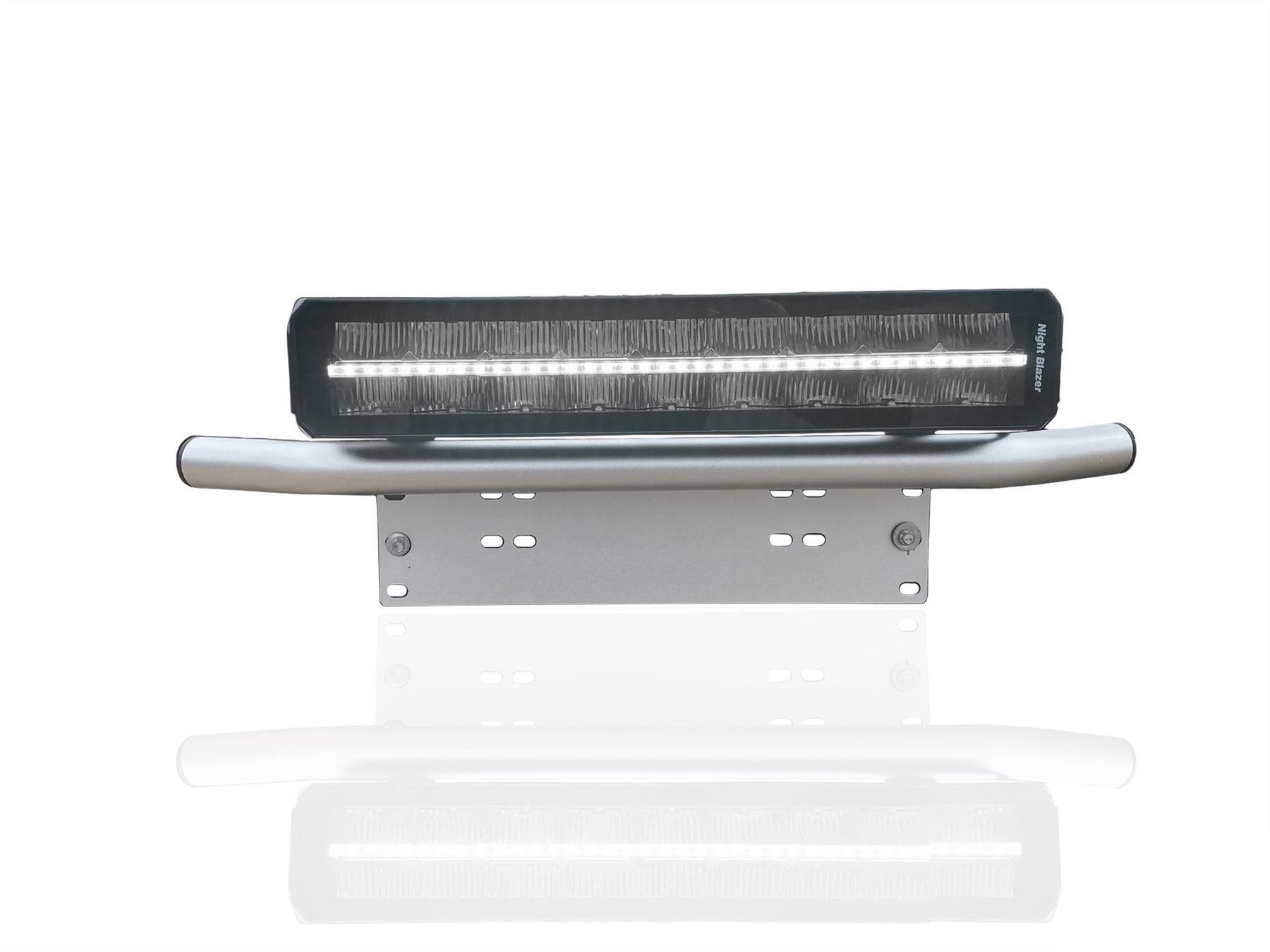 High-quality Aluminium Number Plate Bar + 12v / 24v Night Blazer Dual Row LED Light Bar With DRL / Park Light Row Function for Mitsubishi Pajero / Shogun (2007 - 2021 models). These top-of-the-range bars are very easy on the eye and will have your vehicle looking top spec at a fraction of the cost of the genuine items but with the same high quality.