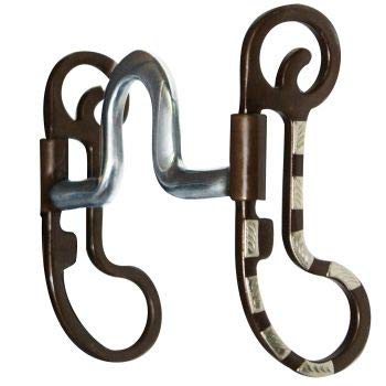 Showman Antique Brown High Port Bit w/ Engraved Silver Overlay. This bit features 5" copper inlay mouth with 2" solid round port. 5 1/4" antique brown steel swivel cheeks are accented with engraved silver overlay. For an average full size horse.