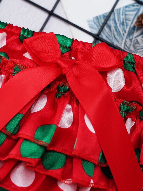 Good elastic waistband, random color big bowknot decorated, ruffle tiered style, solid color, stripe or polka dots print.