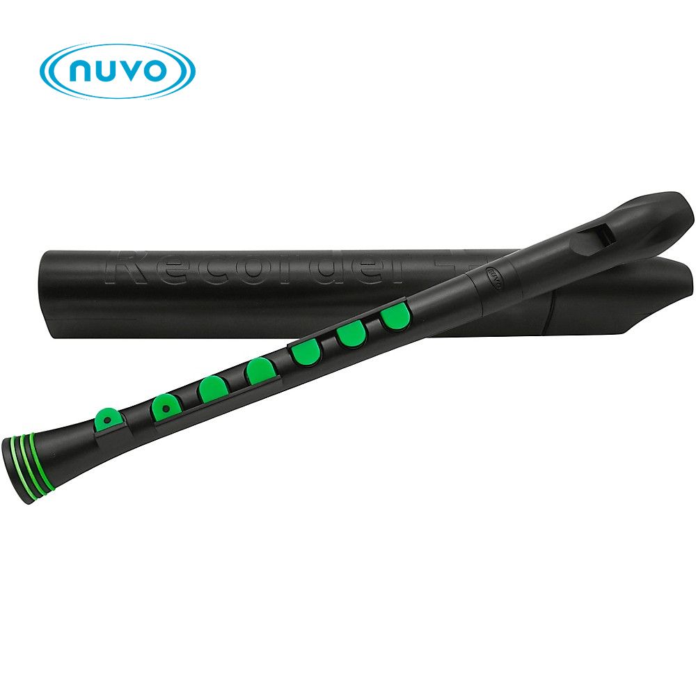 • 1 X Nuvo Recorder+ Silicone GERMAN FINGERING Recorder Black/Green + Case N320RDBGR