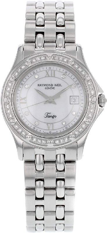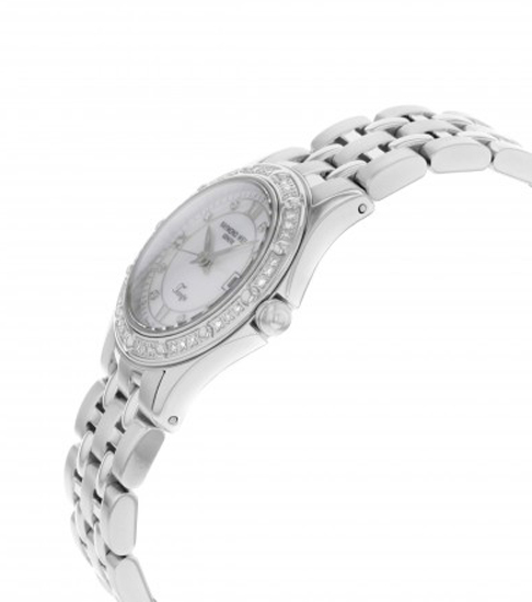 Watch Information: Gender: Women's Case Size: 30mm Dial Color: Mother of Pearl Material Case: Stainless Steel Material Band: Stainless Steel Diamonds: n/a Movement: Quartz Water Resist: 30 Meters Water Resistant Features: Additional Info: Packaging: Raymond Weil Box & Papers