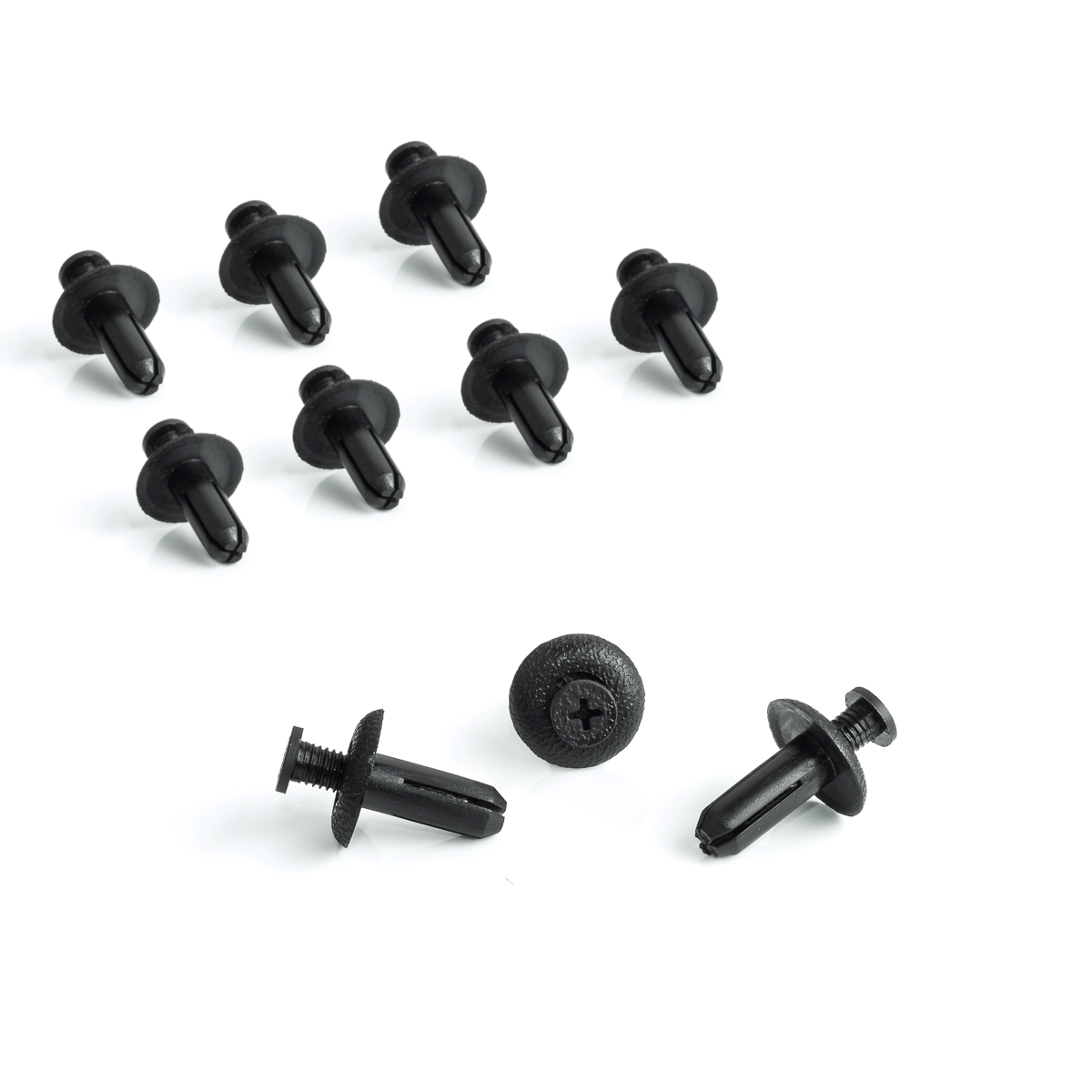 Karosserie Befestigungsclips sind kleine Kunststoffclips, die verwendet werden, um verschiedene Karosserieteile eines Autos an Ort und Stelle zu halten. Sie sind in der Regel leicht zu installieren und zu entfernen, und werden oft verwendet, um Stoßstangen, Kotflügel, Türverkleidungen, Innenraumverkleidungen und andere Teile der Karosserie zu befestigen.