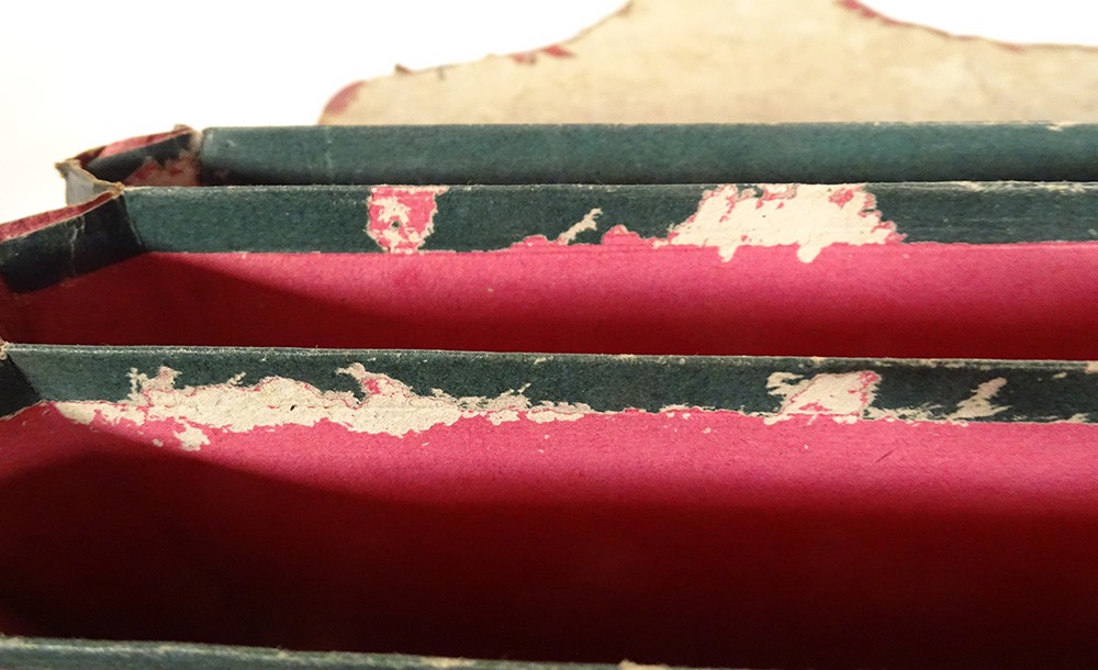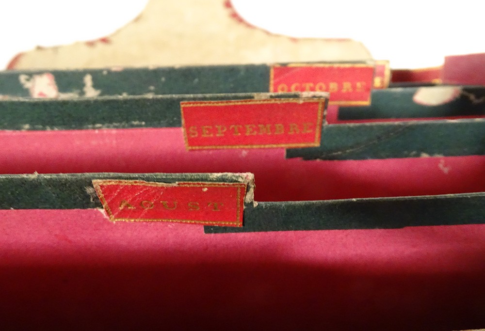 A signaler : manques des étiquettes de mois à l'intérieur, quelques déchirures et taches sur le cuir, usures du temps, voir photos.