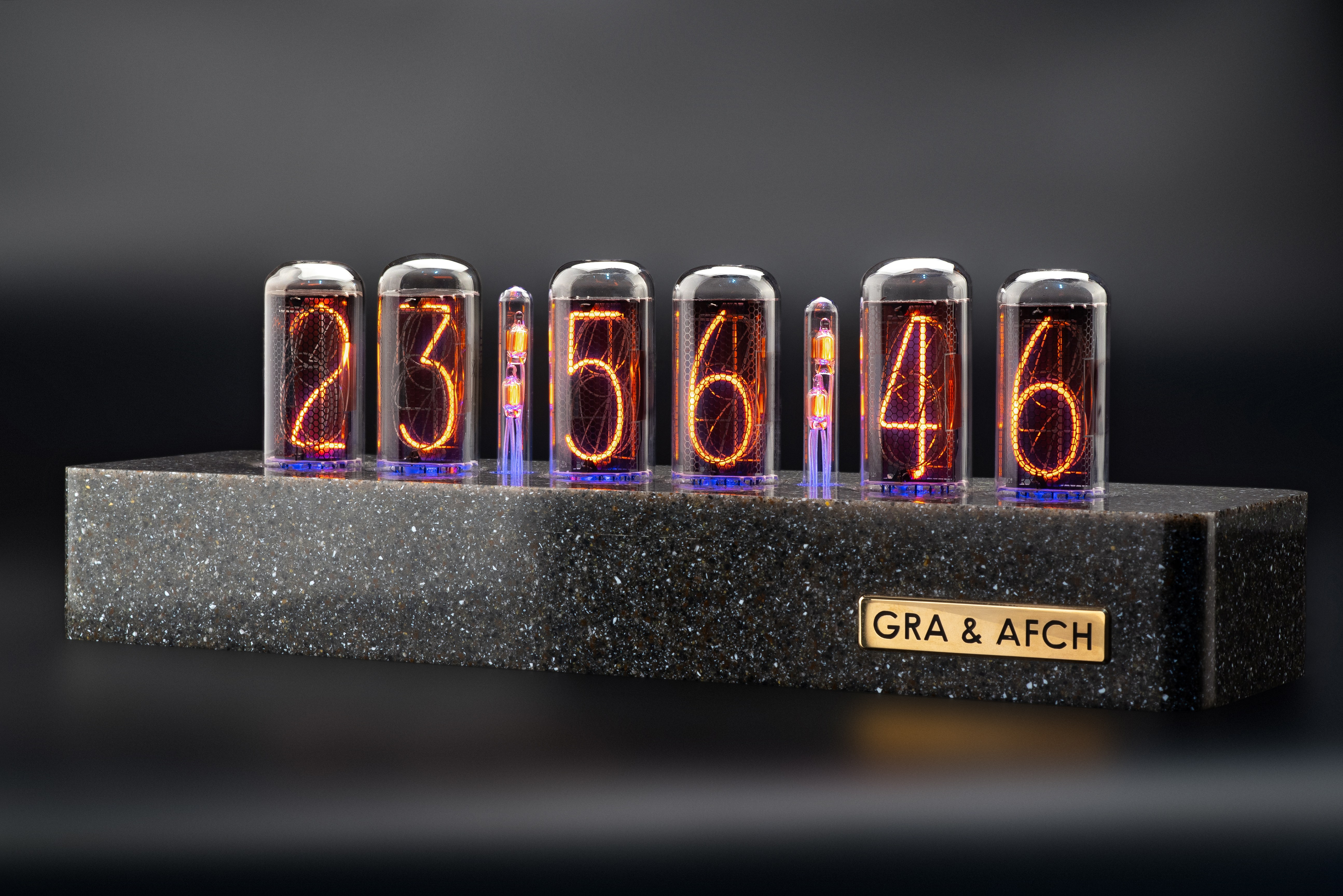 Model “Divergence Meter” Nixie Clock in a Synthetic Granite Case Developed for 6 IN-18 Nixie Tubes, one of the biggest Vintage Nixie Tubes in the World Nixie Tubes Clocks are one of the most beautiful and popular Vintage Clocks IN-18 Tubes are one of the biggest mass-produced digital Nixie tubes Clock based on MCU (microcontroller unit) flashed with Arduino Uno Bootloader and sketch (Firmware) Clock compatible with Arduino Uno, so it allows you to write your own unique programs on the Arduino platform Latest sources are always available on github at the "NixeClock" repository PCB Design Schematic Case and Software made by GRA & AFCH