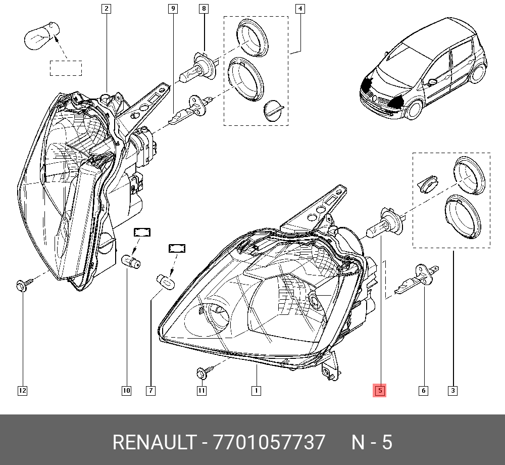 Genuine OE Bulb-Headlamp 7701057737 for Renault 77010-57737