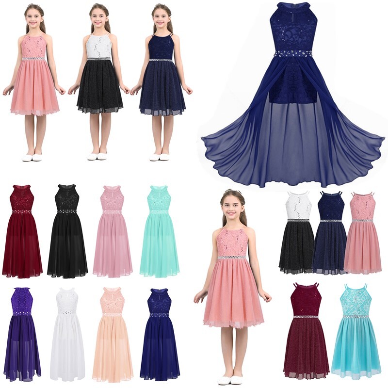 1 layer maxi length chiffon overlay is attached around the waist. Full lining. Beautiful and stylish dress for your girl.