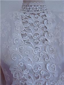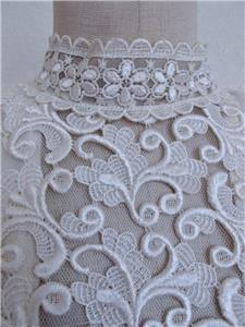 The wide heavly embroidered schiffli lace goes down the front to the dropped waist.