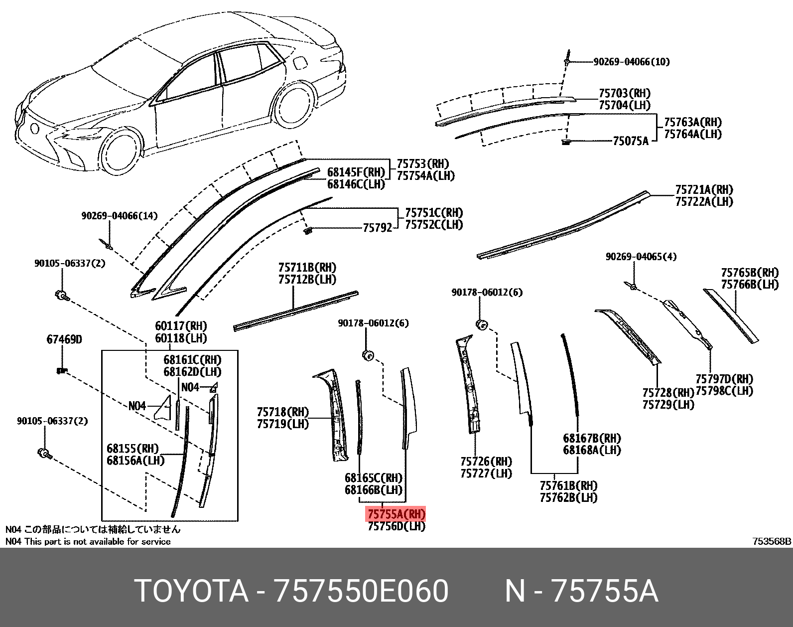 Genuine OE Moulding Assembly Outside 757550E060 for Toyota 75755-0E060