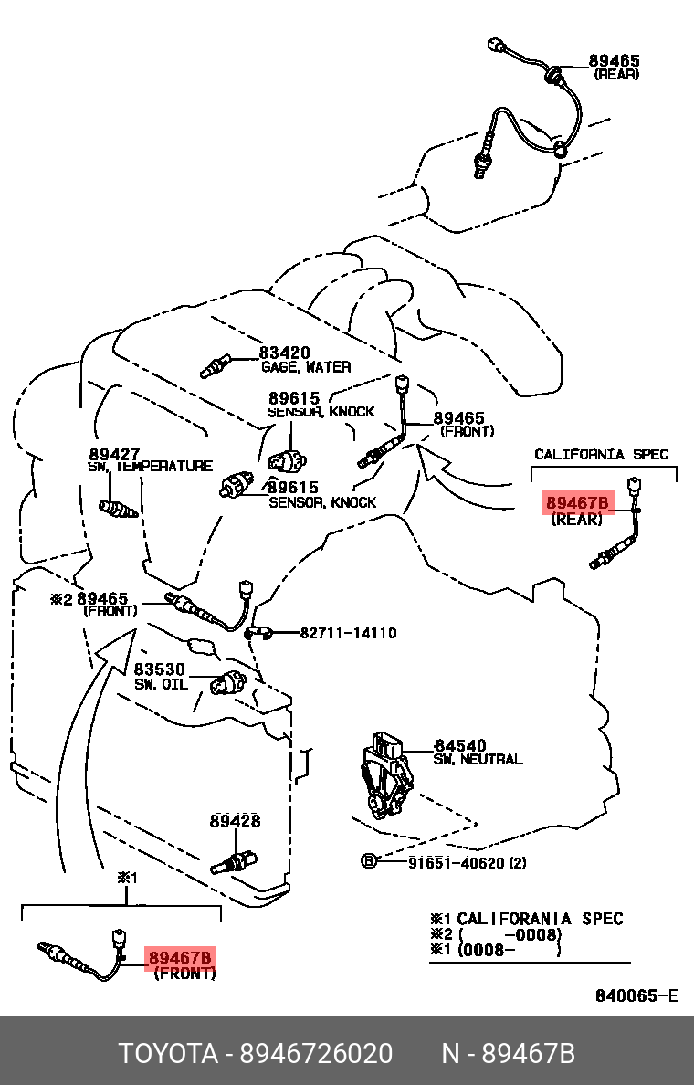 Genuine OE Sensor Assembly Lean Mixture 8946726020 for Toyota 89467-26020