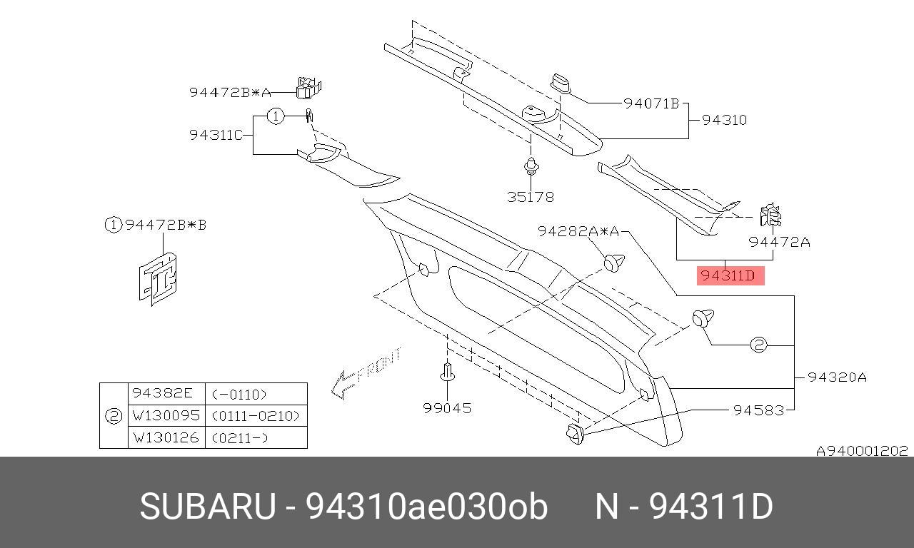 Genuine OE Trim Pnl Assembly R Gup 94310AE030OB for Subaru 94310A-E030OB