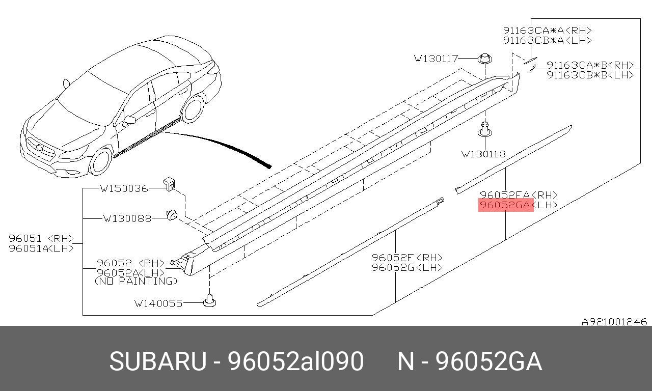 Genuine OE Spoiler Sd Mldng Left Hand 96052AL090 for Subaru 96052-AL090