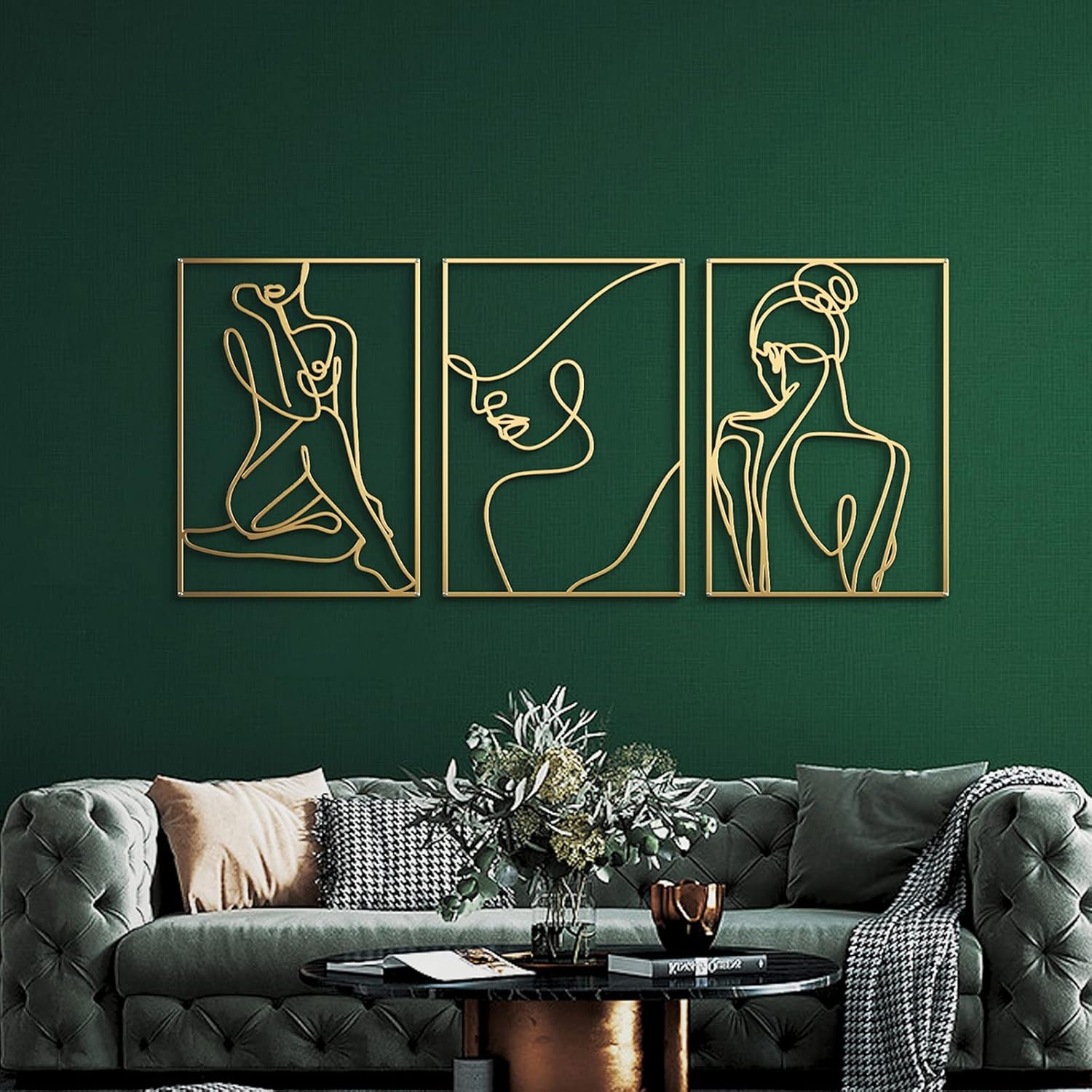 3 Pack Gold Wall Decor, Metal Minimalist Bedroom Wall Decor, Abstract Line Metal Wall Art, Woman's Body Shape Gold Decor For Living Room(11.8x16.5 Inches)